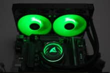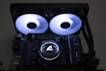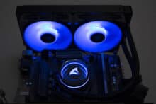 Als Kritikpunkte der S80 RGB würden wir die Lüfter mit proprietären RGB-Anschluss sowie die Lautstärke der Wasserkühlung nennen. Letzteres trifft aber auf fast alle AiO-Wasserkühlungen zu. Mit einer angepassten Lüfterkurve und reduzierten Drehzahlen kann die Lautstärke deutlich abgesenkt werden, natürlich zu Lasten der Kühlleistung. Die proprietären RGB-Anschlüsse stellen ebenfalls kein größeres Problem dar, da ein passender Adapter mitgeliefert wird und die Verbindung mit der Pumpe über einen Standardanschluss erfolgt.
