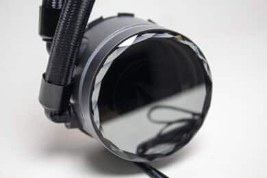 Für die Umsetzung der Beleuchtung kommen jeweils 12 adressierbare RGB-LEDs in der Lüfternabe zum Einsatz. Die Ansteuerung der LEDs erfolgt dabei über einen proprietären Anschluss, der mittels Adapter aber in einen herkömmlichen 5V-3-Pin-ARGB-Stecker umgewandelt und mit dem RGB-Kabel der Pumpe verbunden werden kann.