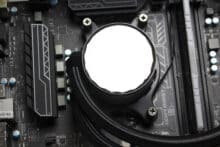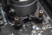 Die Montageprozedur ist bei allen AiO-Wasserkühlungen von Sharkoon identisch. Im Folgenden erläutern wir den Ablauf auf einem AM4-Mainboard. Die Montage bei Intel funktioniert größtenteils analog, nur dass ein anderer Halterahmen sowie die mitgelieferte Backplate verwendet werden müssen.