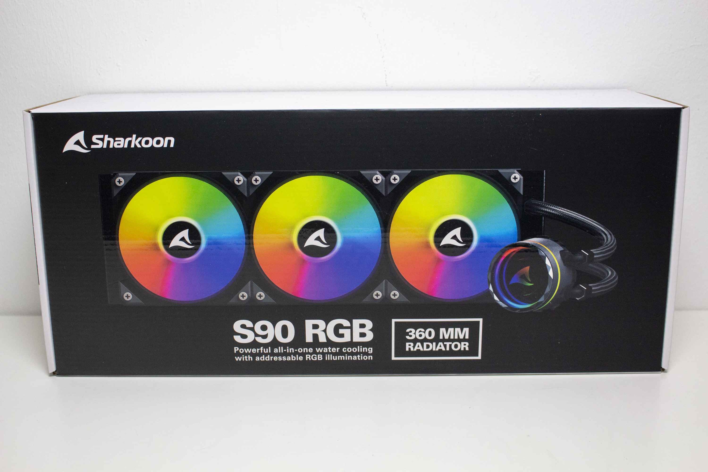 Sharkoon hat im Februar 2023 mit der S70 RGB, S80 RGB und S90 RGB die ersten AiO-Wasserkühlungen mit in das eigene Portfolio aufgenommen. Die S90 RGB soll eine All-in-One-Wasserkühlung sein, die mit einem 360-Millimeter-Radiator eine effiziente Kühlung für alle CPUs liefern und durch die beleuchteten Lüfter sowie Pumpenelemente mit Infinity-Spiegel-Effekt auch optisch überzeugen soll. Weiterhin nennt der Hersteller als Features die hohe Sockelkompatibilität mit einfacher Montage, flexible sowie textilummantelte Schläuche und ein drehbares Sharkoon-Logo im Pumpendeckel. Was die Sharkoon S90 RGB so kann, erfahrt hier in den folgenden Kapiteln.