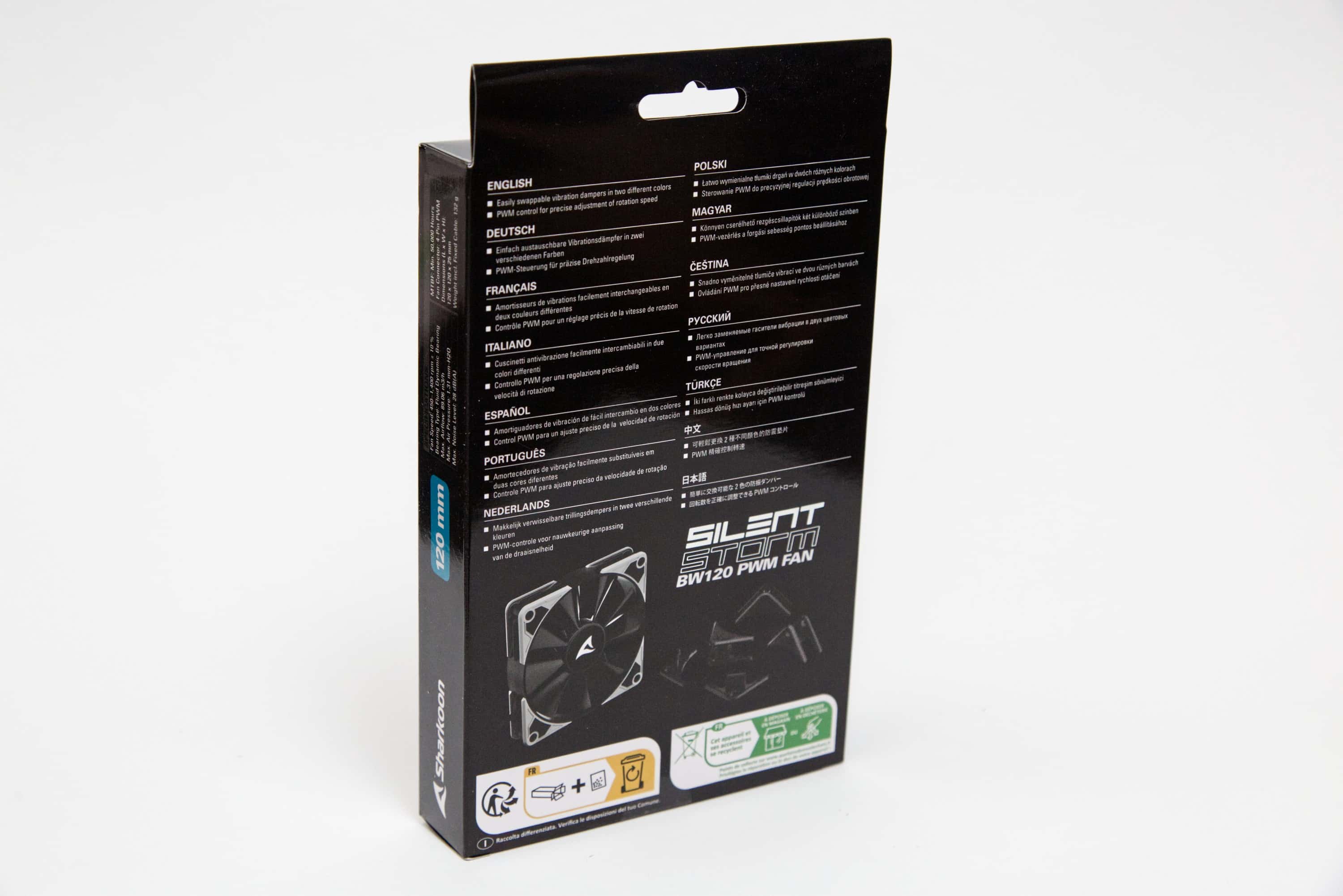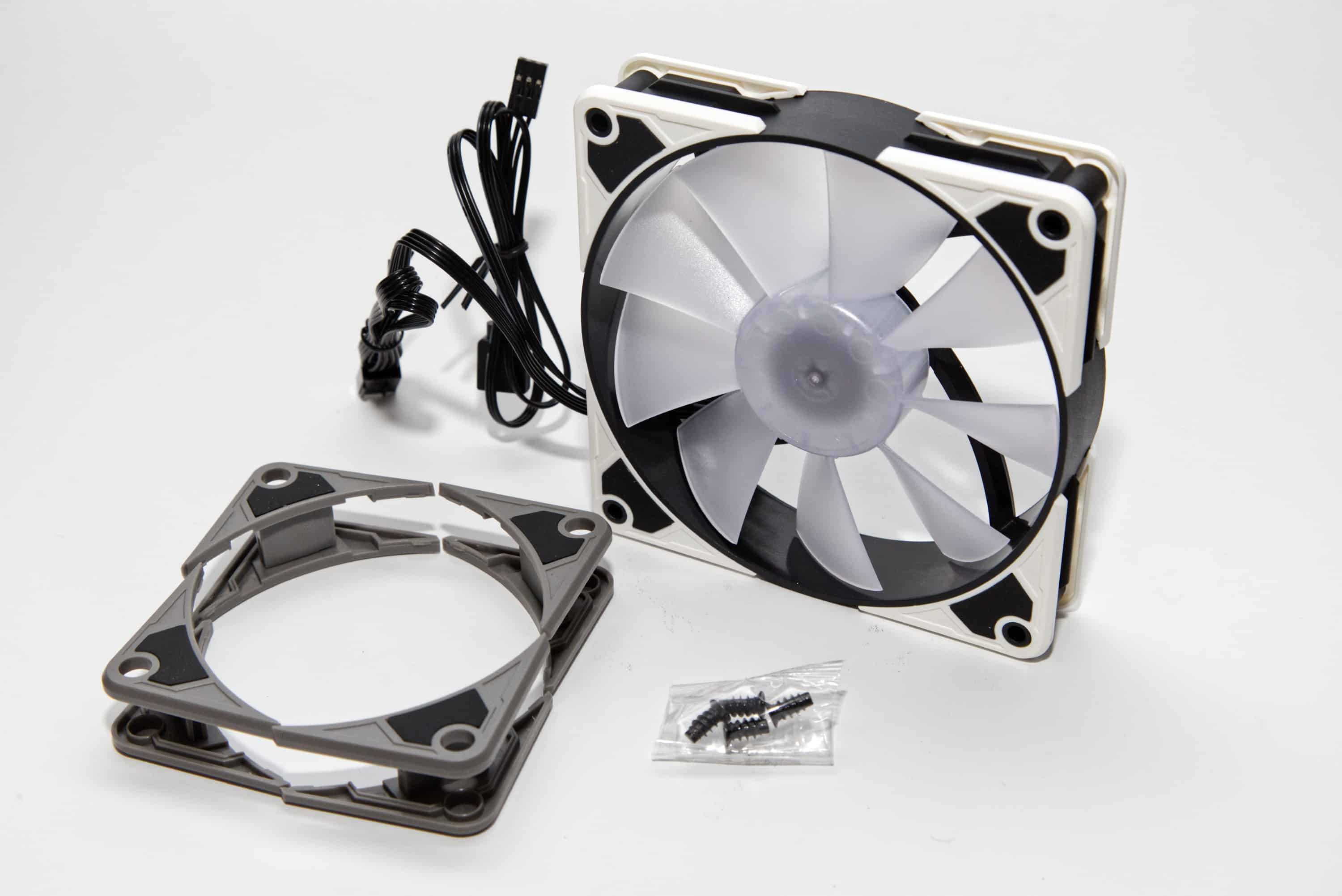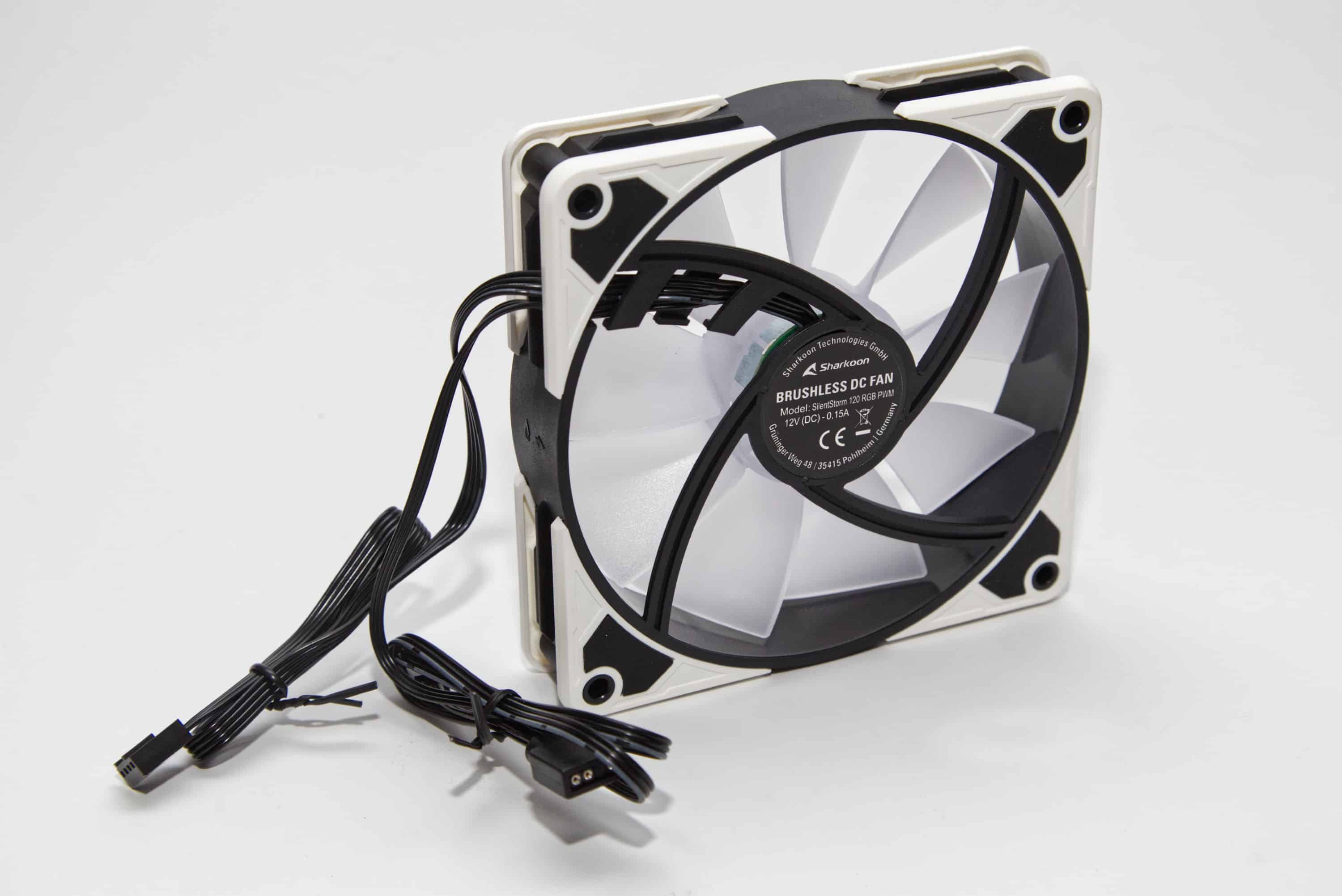 Die Sharkoon SilentStorm BW120 die RGB-Versionen in 120 mm sind Lu00fcfter mit Alleinstellungsmerkmalen durch die wechselbaren Ecken. Leistung und Lautstu00e4rke sind fu00fcr den Preis durchaus respektabel.