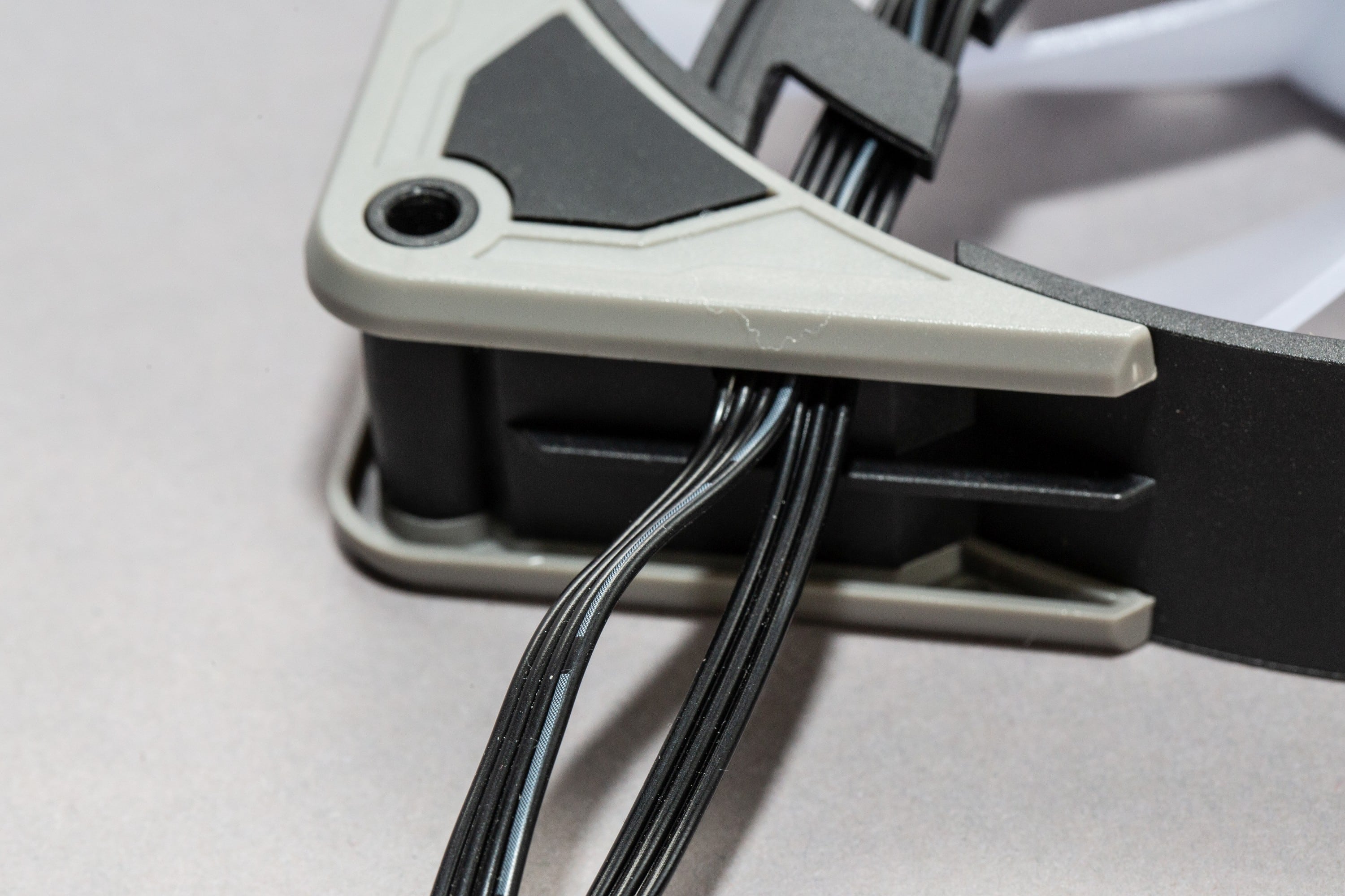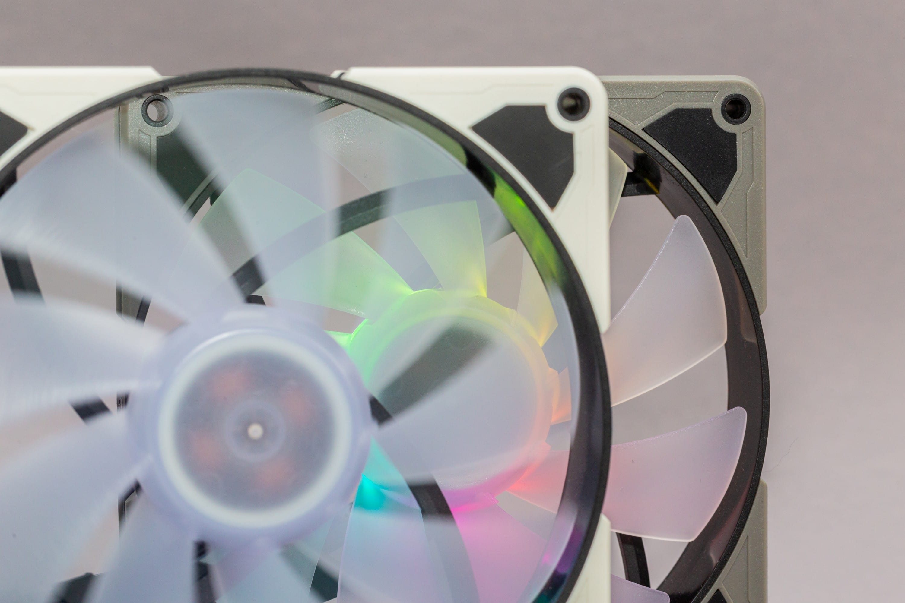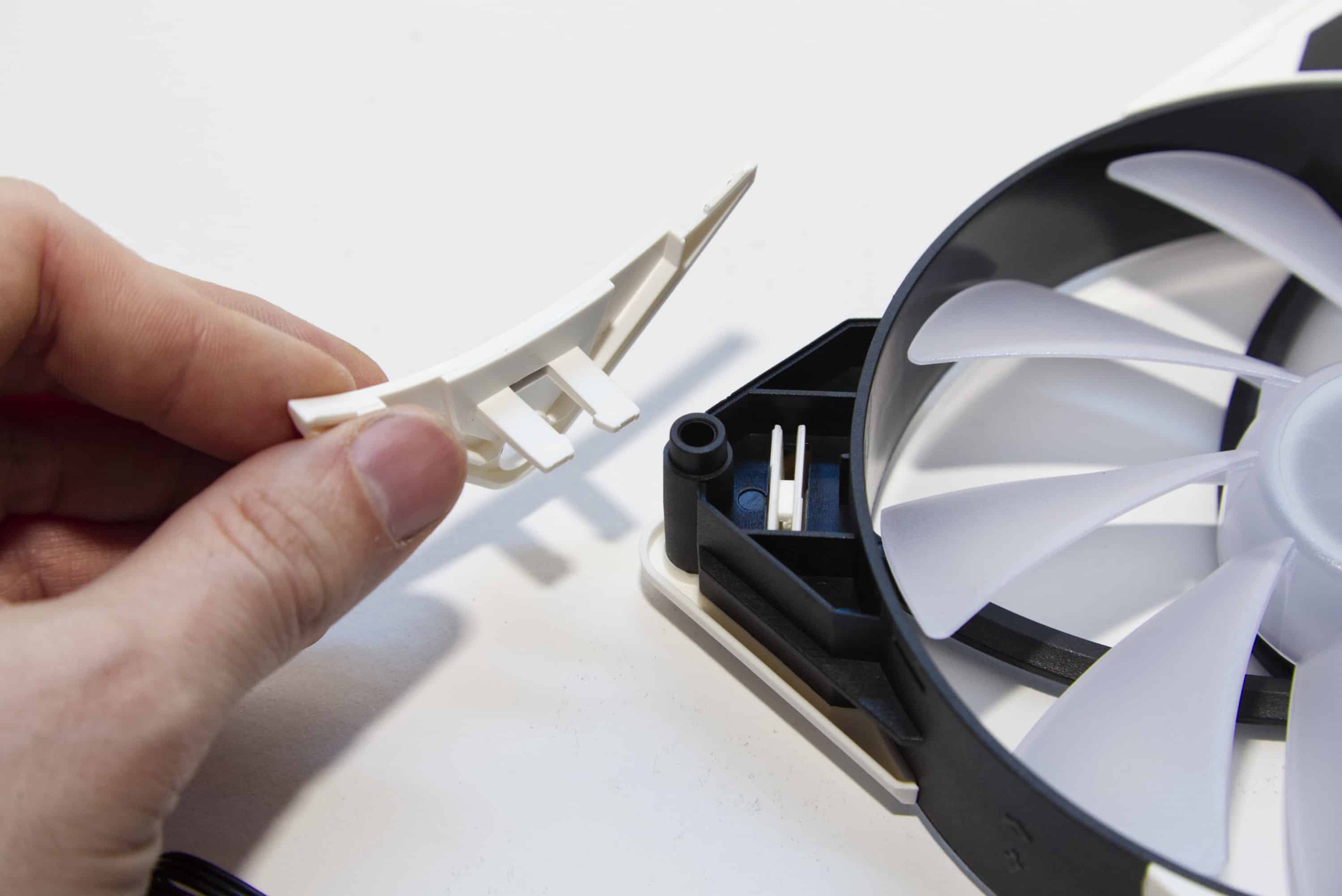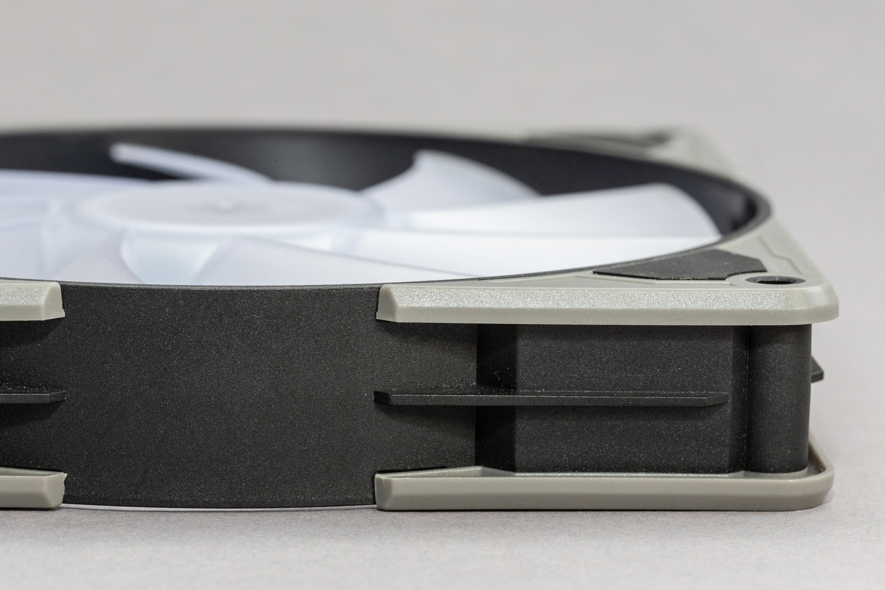 Der Wechsel erfordert eine gewisse Menge an Kraft, sodass ich zunächst Angst hatte, etwas zu zerbrechen, aber auch bei mehrfachen Wechseln im Laufe des Testzeitraums gab es letztendlich keine Probleme. Ich muss zugeben, dass mich hier die Entscheidung wundert, graue Ecken bei den RGB-Lüftern mitzuliefern. Schwarze Rahmen sind bei den SilentStorm 140 RGB ab Werk also nicht geplant, obwohl sie einfacher mit den meisten Farbkonzepten zu vereinen wären. Mittelgrau? Hmmm… nicht gerade eine weit verbreitete Helligkeitsstufe im modernen PC-Bau.