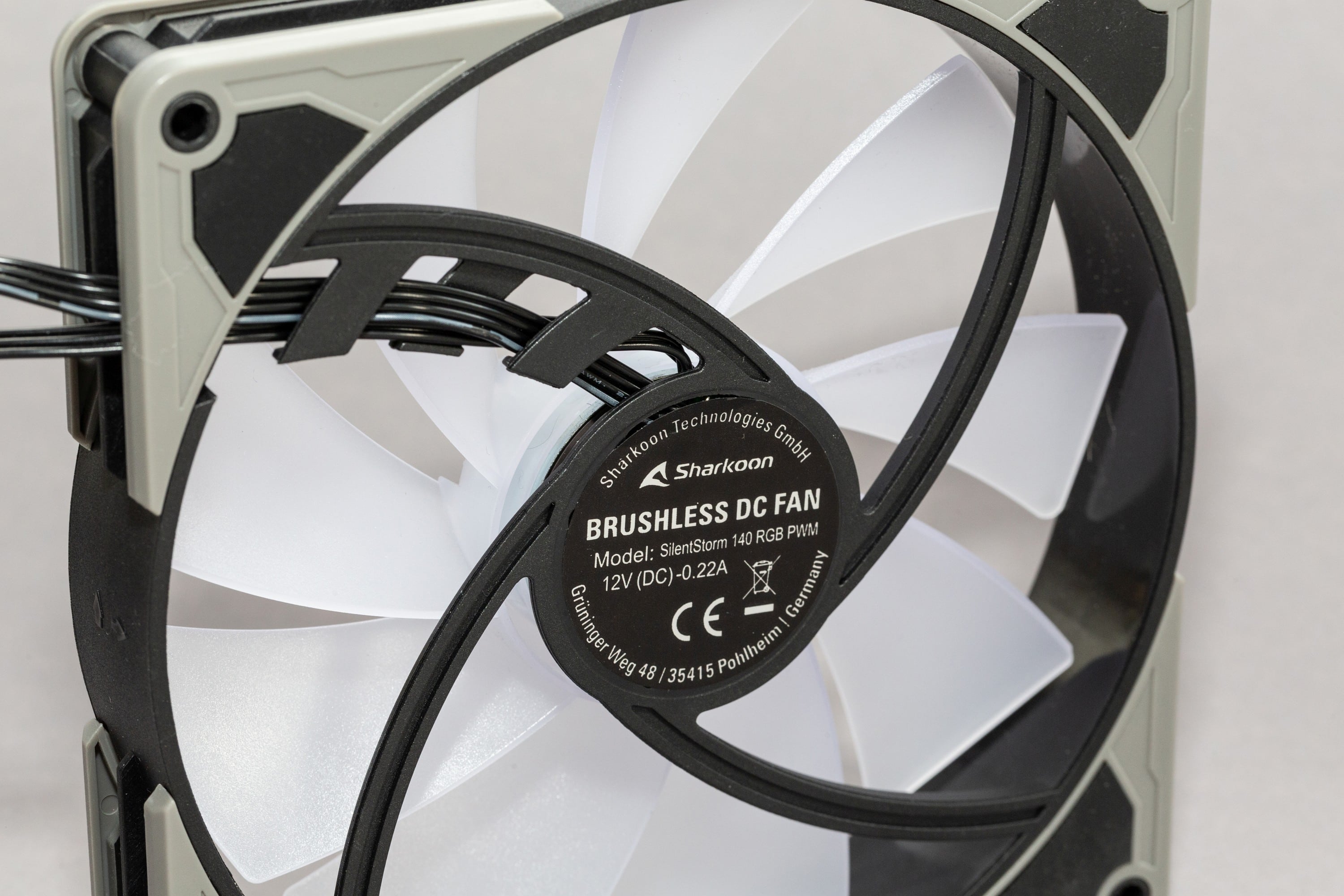 Die Verarbeitung der Sharkoon SilentStorm 140 RGB sticht nicht aus der Masse heraus. Allerdings hätte ich in der doch recht günstigen Preisklasse sowieso keine Premium-Qualität erwartet. Insgesamt besitzen sie jedoch einige interessante Features. So sind die Ecken zur Vibrationsreduzierung gummiert, was bei preisähnlichen Modellen, wie den Arctic F14 oder be quiet! Pure Wings, nicht zu finden sind.