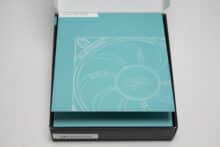 Öffnet man die drei Lüfter-Verpackungen, trifft man auf ein gefaltetes Element aus bunter Pappe, welches mit einer technischen Zeichnung und Entsorgungshinweisen bedruckt wurde. Klappt man die Schachtel auf, fällt der Blick direkt auf den Lüfter sowie eine kurze und knackige Montageanleitung. Hinter dem Lüfter ist zudem eine Grafik aufgedruckt, die zeigt wie der Zero-Fan-Modus funktioniert. Zum Lieferumfang gehören pro Lüfter außerdem vier schwarze Schrauben und ein PWM-Verlängerungskabel.