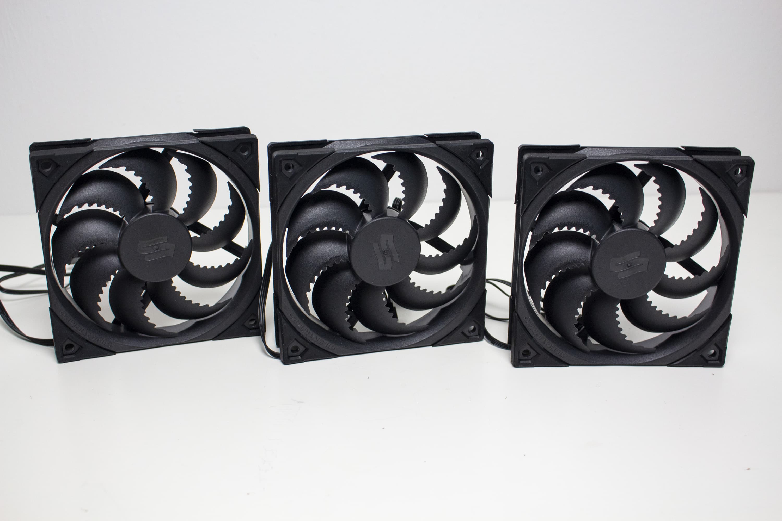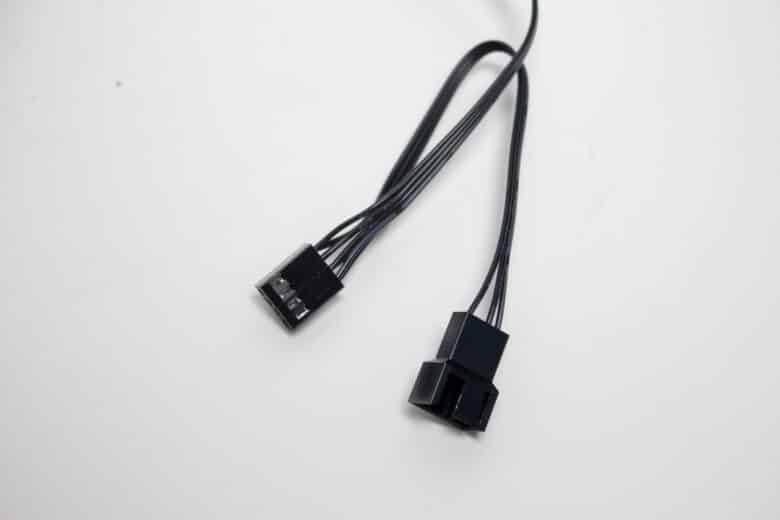 Die Lüfter werden über ein schwarzes 4-Pin-PWM-Kabel mit dem Mainboard verbunden und verfügen über einen Drehzahlbereich zwischen 300-1800 Umdrehungen pro Minute. Des Weiteren soll das hydrodynamische Gleitlager für eine angenehme Laufruhe sorgen. Praktischerweise hat der Hersteller jedes Kabel auch mit einer Y-Weiche ausgestattet. Dadurch spart man sich später bei der Installation einen entsprechenden PWM-Splitter.