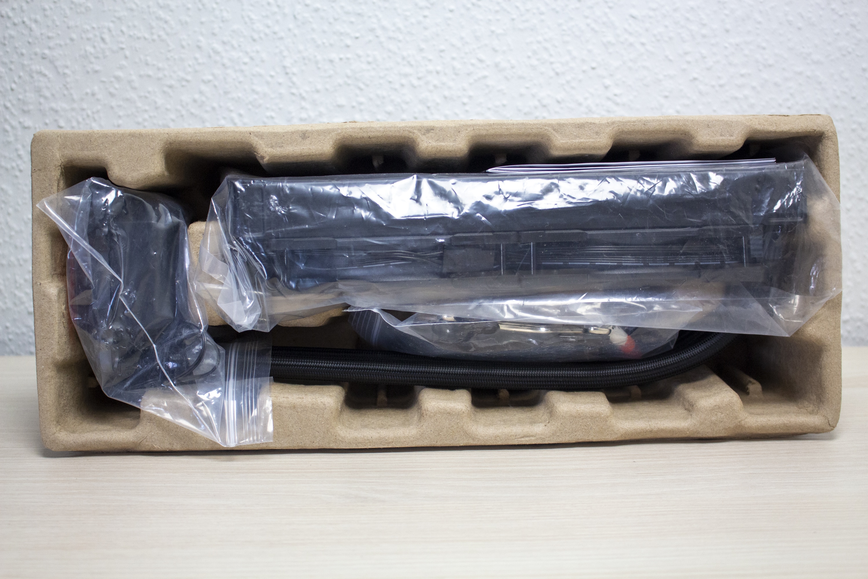 Packt man den Inhalt des Kartons aus, dann findet man die Radiator-Pumpenkombination mit vormontierten Lüften, die in einem einfachen Block auf Pappe platziert wurde. Außerdem wurden der Radiator und die Pumpe von einer Folie aus Kunststoff umhüllt, um Kratzer auf den lackierten Bauteilen zu vermeiden. In einen kleinen Beutet findet man zudem sämtliches Montagezubehör (Schrauben, Backplate, Abstandshalter, Bügel, Wärmeleitpaste) sowie die Montage-Anleitung. Diese beschreibt alle Montageschritte mit Bild und Text.