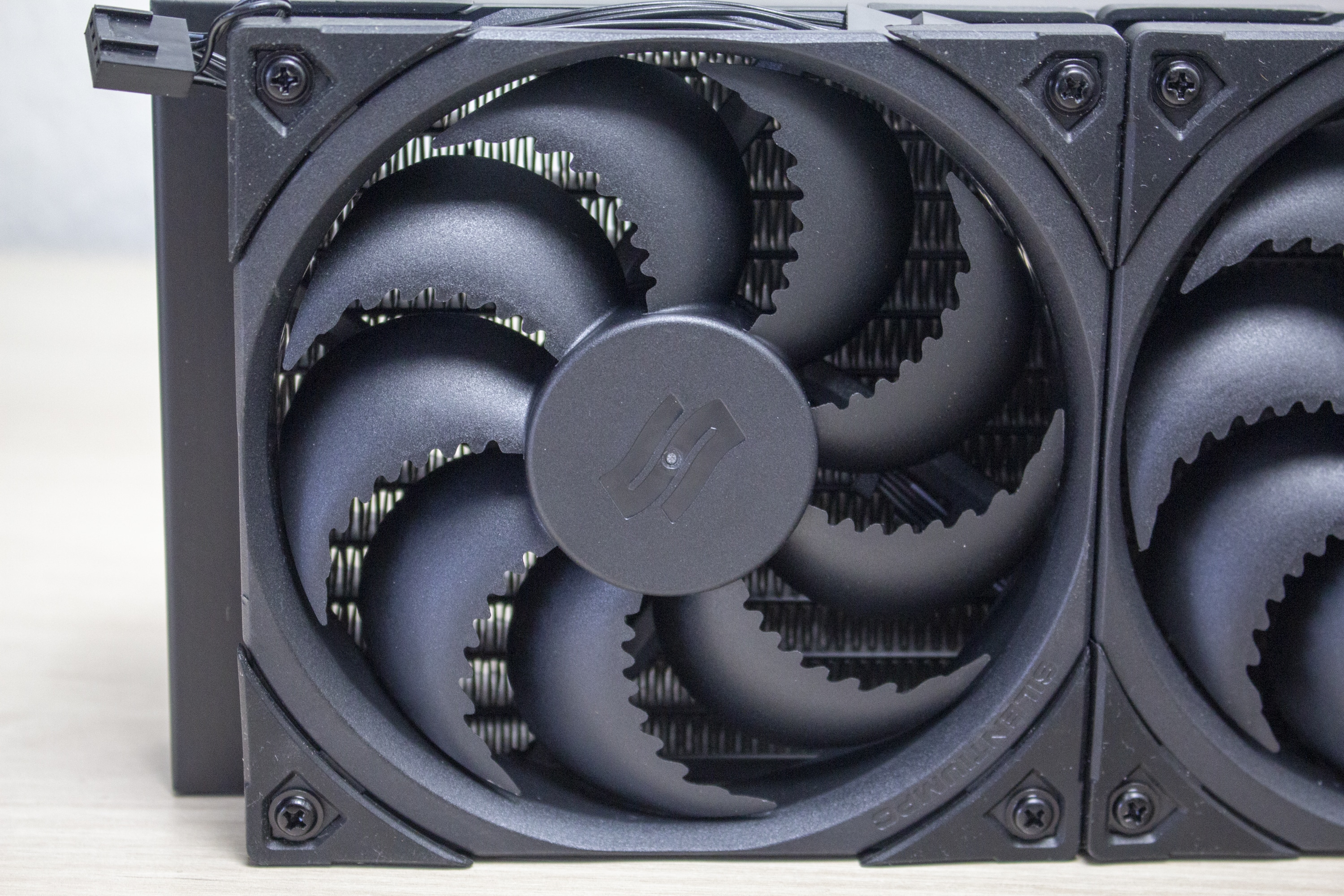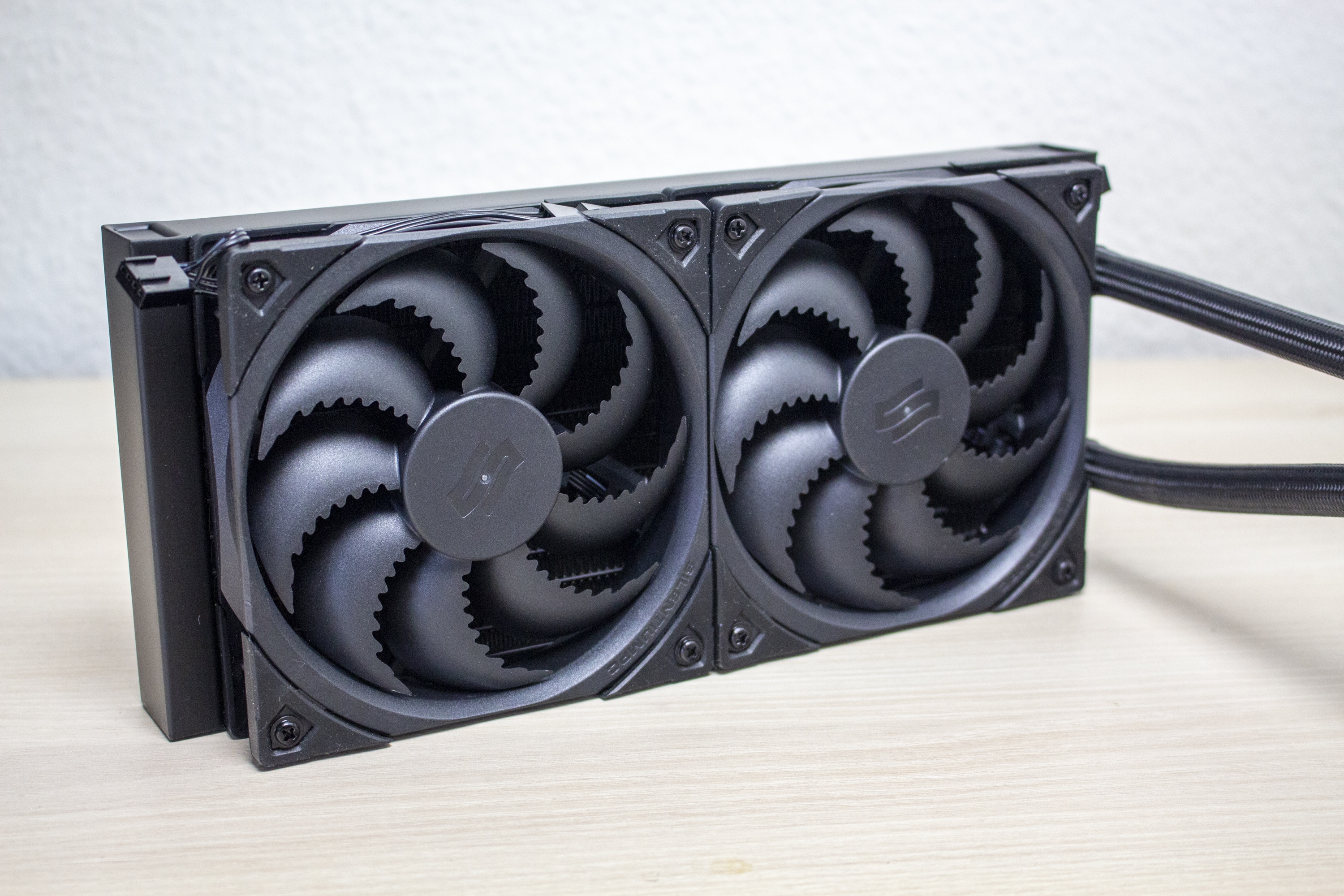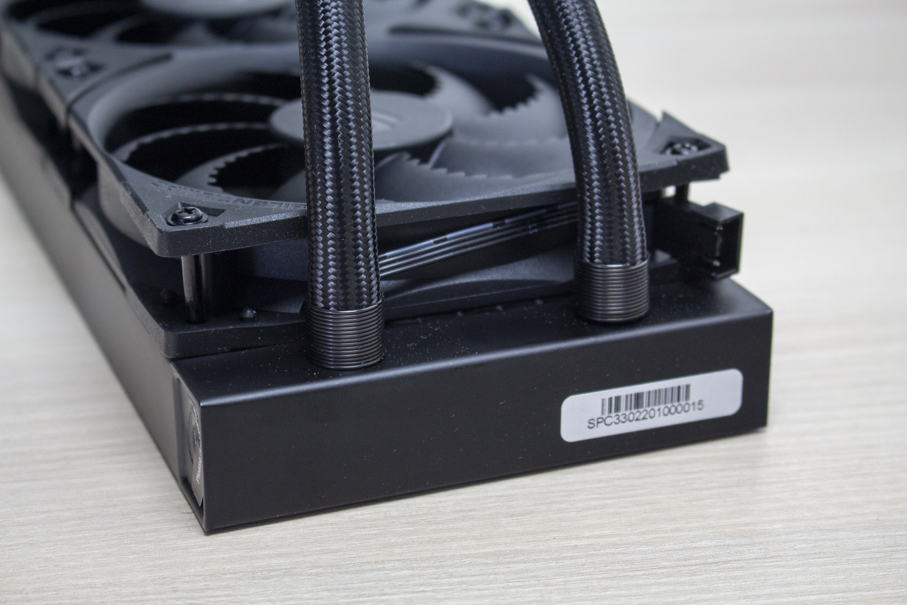 Unabhängig von der Variante sind Radiator, Schläuche und der Pumpenblock optisch sehr schlicht gehalten. So verzichtet der Hersteller, zugunsten eines günstigeren Preises, auf sämtliche RGB-Effekte oder digitale Displays. Das gilt auch für die Version mit ARGB-Lüftern. Der aus Aluminium gefertigte Radiator ist komplett schwarz lackiert und 29 Millimeter dick. Dieser Wert liegt etwas über dem Durchschnitt vieler handelsüblicher Kompaktwasserkühlungen.