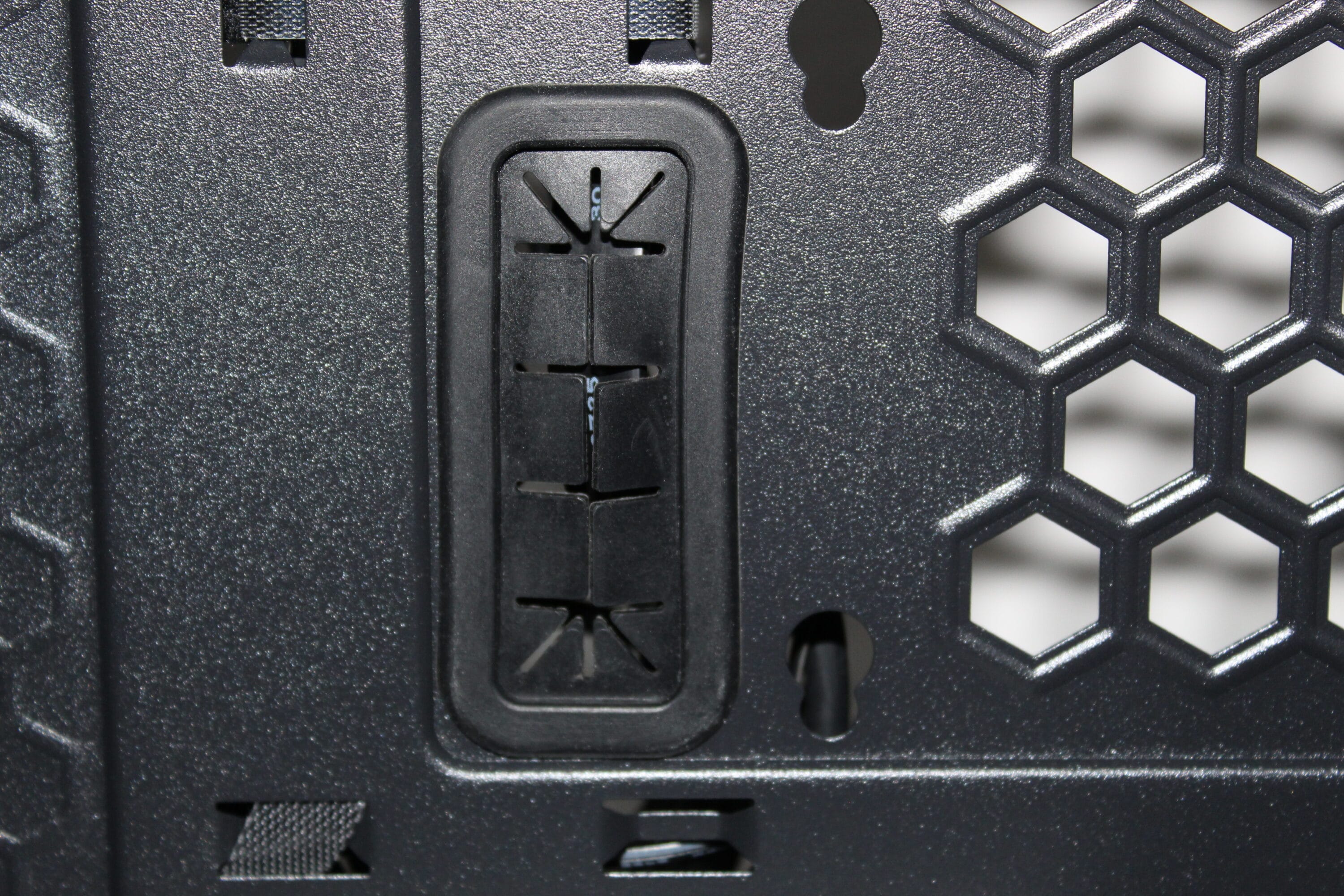 Generell sind die Kabeldurchführungen gut gelöst. An allen benötigten Stellen befinden sich Öffnungen, nahezu alle sind mit einem Gummidurchbruch versehen, um optisch ordentlich zu wirken. Im Vergleich zu höherpreisigen Gehäusen wirken diese nicht extrem hochwertig, sie erfüllen jedoch durchaus ihren Zweck . Die einzige Ausnahme ist im unteren Bereich.