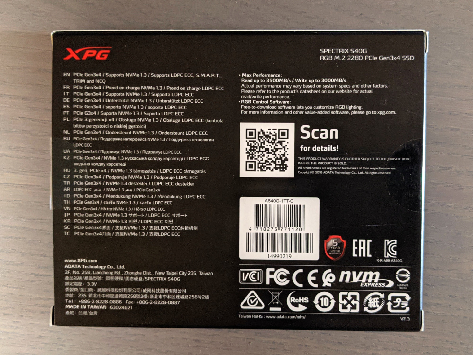 Bereits im Juli 2019 wurde die Spectrix S40G vorgestellt. Die SSD kommt im kompakten M.2-Formfaktor und setzt auf PCIe 3.0 x4 und NVMe 1.3. Das auffälligste Merkmal ist aber wohl der flache Kühlkörper mit RGB-Beleuchtung.