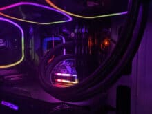 Da zusätzliche RGB-Beleuchtung zu einem höheren Verbrauch und teils auch Temperaturproblemen führt, haben wir diese während des Tests durchgehend beobachtet. Auf dem Desktop erreichten wir ohne RGB-Beleuchtung 38°C, mit 39°C. Während der Benchmarks stieg die Temperatur auf maximal 71°C an (ohne RGB-Beleuchtung). Mit RGB-Beleuchtung wurden unter Last maximal 73°C ausgelesen. Die Temperatur ist damit zwar relativ hoch, aber unbedenklich.