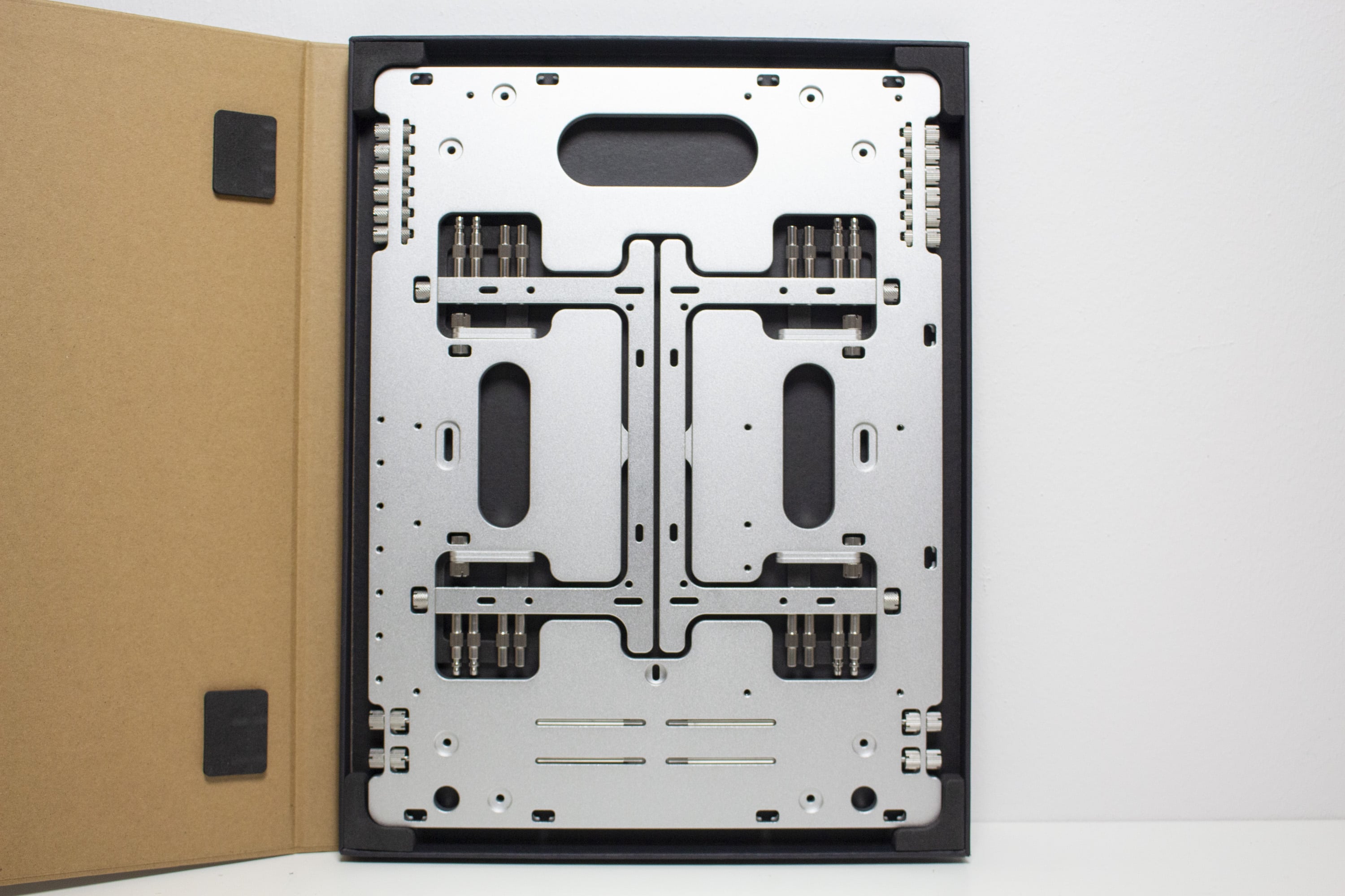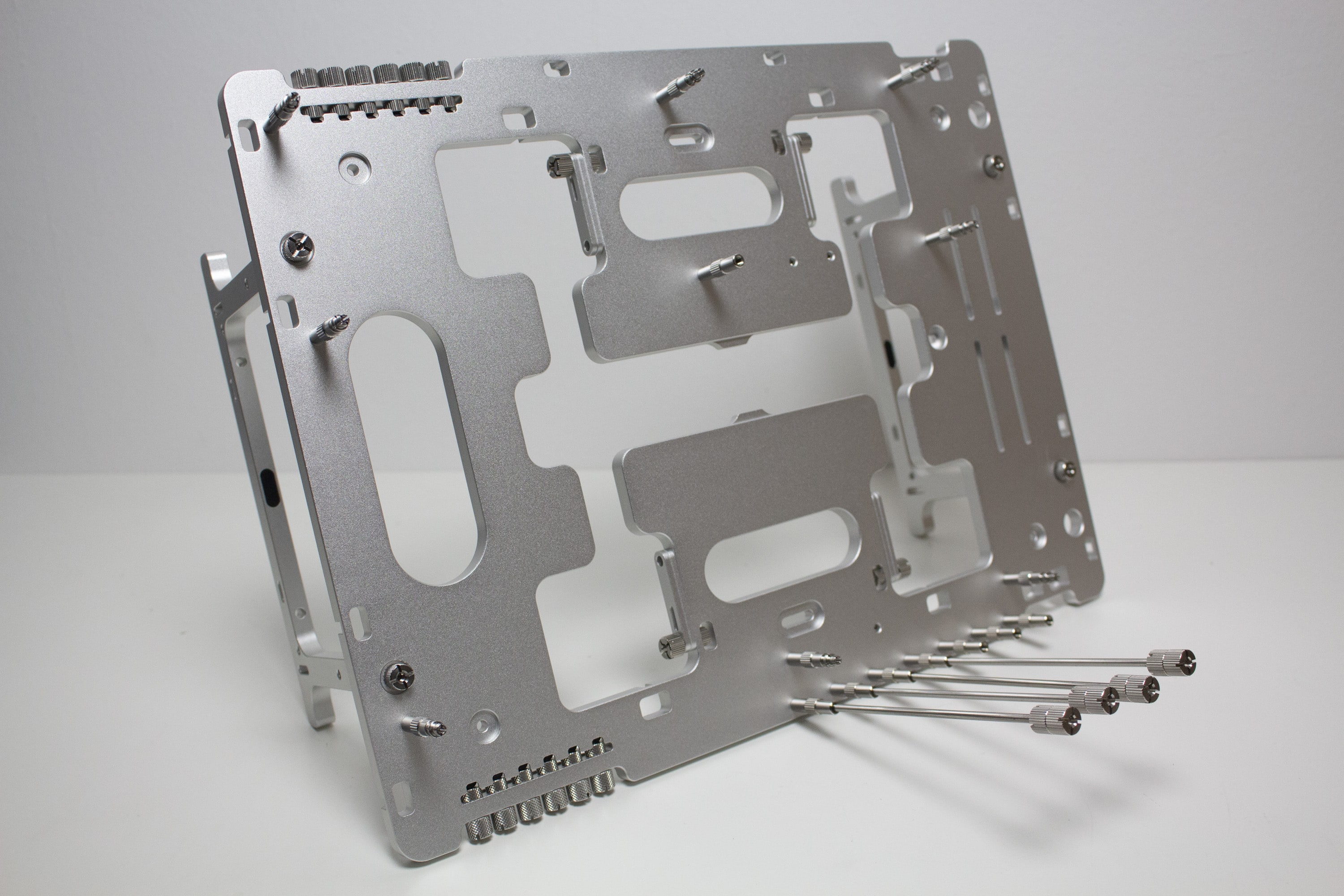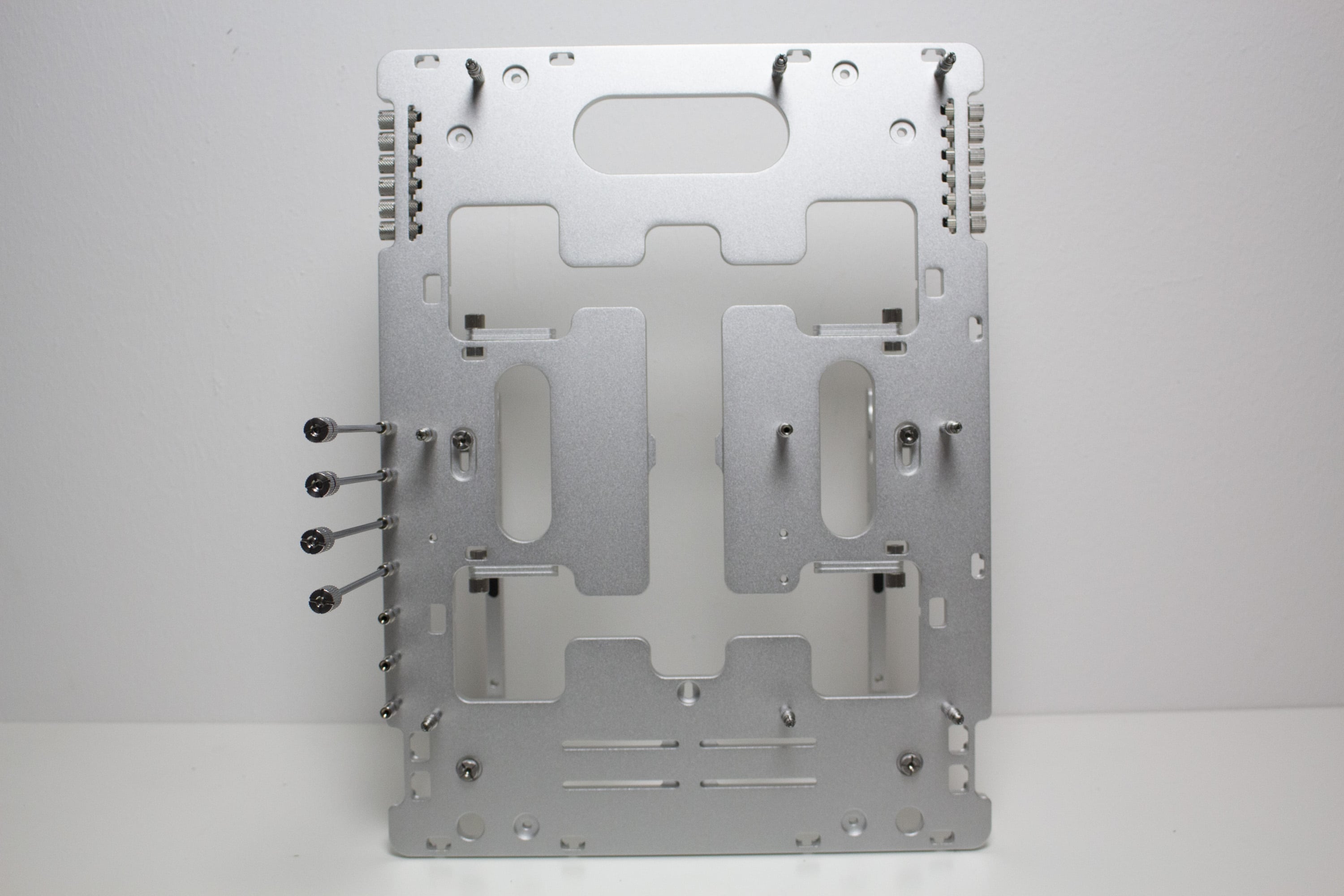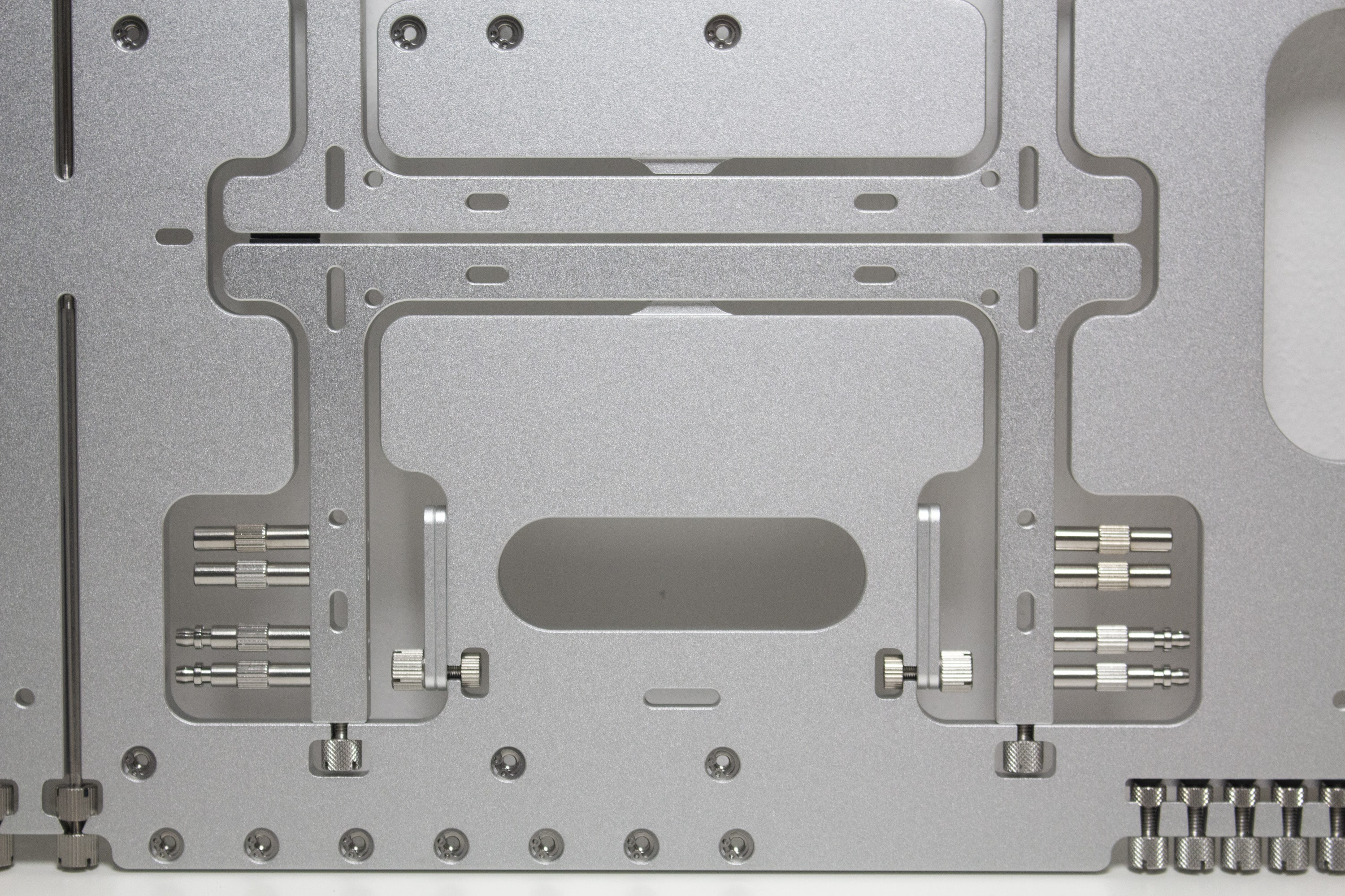 Ein Benchtable ist natürlich immer dafür gedacht um schnell Komponenten wechseln oder testen zu können. Da es keine Seitenwände, Glasfenster oder Sonstiges gibt, war der Einbau aller Komponenten logischerweise schnell abgeschlossen. Hinzu kommt, dass alle PC-Komponenten inklusive Festplatten komplett ohne Werkzeug eingebaut werden können. Besonders die acht Mainboard-Abstandshalter mit Schnellverschluss sind praktisch. Der neunte Abstandshalter verfügt über ein handelsüblicher Gewinde, um das Mainboard im Transportfall zusätzliche sichern zu können.
