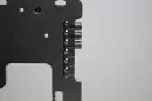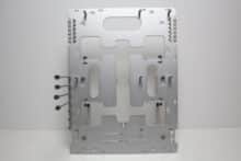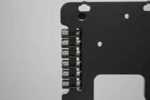 Neu ist beim Streacom BC1 V2 die Möglichkeit zur vertikalen Orientierung des Benchtabels. Dazu müssen lediglich die zwei Standfüße anders positioniert werden. Durch entsprechende Montagepunkte kann die Basisplatte dabei in zwei verschiedene Richtungen (GPU oben, GPU unten) orientiert werden. Ebenfalls neu ist beim BC1 V2 die Gummierung der Standfüße. Diese wurde durch die längliche Form nun langlebiger ausgelegt und verhindert ein Verrutschen des Benchtables sehr gut. Zuletzt hat Streacom in die Basisplatte noch zwei Aussparungen mit einem Durchmesser von jeweils 12 Millimetern bohren lassen. Diese Öffnungen dienen als Vorbereitung für optionale Power- bzw. Reset-Taster.