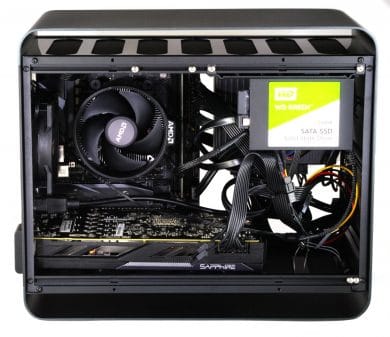 Selbst ohne den Einsatz zusätzlicher Gehäuselüfter kann der eingesetzte Ryzen 5 2400G mit dem mitgelieferten Kühler (Wraith Stealth) im Gehäuse noch knapp im Rahmen der Spezifikationen gekühlt werden. Die Temperaturen sind in dieser Konfiguration allerdings noch merklich schlechter als im Kolink Rocket, das ab Werk einen Gehäuselüfter mit sich bringt.