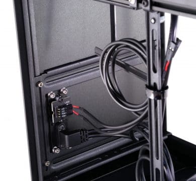 Unterm Strich ist die Umsetzung der Schienen, mit Gleitmuttern und Schrauben, leicht zu verstehen und anzupassen. Sie bietet ein hohes Maß an Flexibilität und ist damit, insbesondere für ein Gehäuse in diesem Format, perfekt. Ein kleines Manko ist lediglich die Verarbeitungsqualität derselben: Die gebogenen Stahlschienen sind zwar durchgehend deckend beschichtet, einige Kanten sind aber nicht entgratet.
