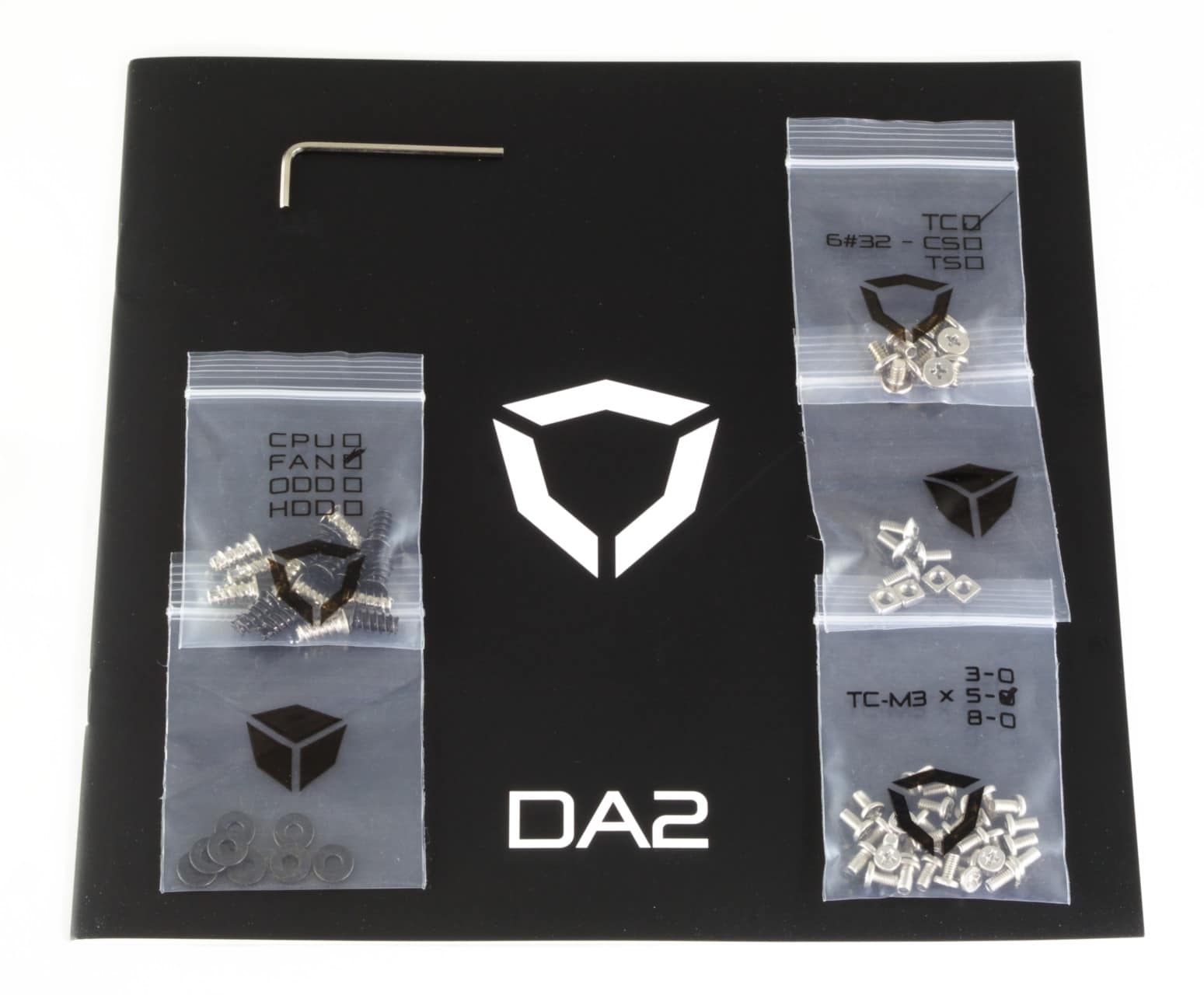 Besonders am DA2 ist die Art der Montage von zusätzlichen Komponenten: Im Gehäuse gibt es Schienen, auf denen Brücken frei verschoben und befestigt werden können. Diese wiederum bieten Platz für zahlreiche Komponenten, beispielsweise Laufwerke, Lüfter oder Radiatoren. Damit kann man den Innenraum des Gehäuses sehr flexibel Anpassen und beispielsweise einen 240-Millimeter-Radiator über dem Mainboard verbauen. Im Gegenzug bedeutet dieses System aber auch, dass sich die maximale Bestückung mit Komponenten, insbesondere mit Lüftern und Laufwerken, nur schwer beziffern lässt. Aus diesem Grund empfehlen wir interessierten Nutzern, dass sie sich vor dem Kauf die Anleitung des Gehäuses durchlesen und planen, wie sie die Schienen einsetzen möchten.