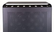 Eine Besonderheit sind die Seitenteile des Gehäuses: Diese bestehen aus gebogenem Aluminium, das mit zahlreichen Öffnungen zum Luftaustausch versehen ist. Die Seitenteile werden oben und unten durch Gumminoppen gehalten, die am Korpus einrasten. Um die Seitenwand abzunehmen muss eine Seite nach unten gedrückt und die andere Seite dann nach außen gedrückt werden; dann lassen sich die Seitenteile einfach abnehmen. Dieser besondere Montageweg hat den Vorteil, dass er vollkommen ohne Schrauben auskommt. In der Praxis funktioniert er gut, auch wenn man sich erst an diese neue Art der Befestigung gewöhnen muss.