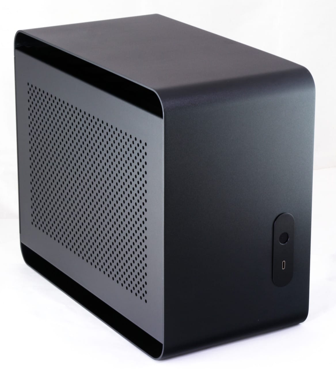 Streacom verzichtet nahezu vollständig auf Bedienelemente: Das Gehäuse bietet lediglich einen einzelnen USB-Typ-C-Anschluss (3.0 / 3.1) und einen Power-Button mit weißer LED an der Vorderseite, weitere Anschlüsse oder Taster gibt es nicht. Angesichts der sehr geringen Größe des Gehäuses ist das allerdings kein Problem, denn das Heck ist leicht zu erreichen.
