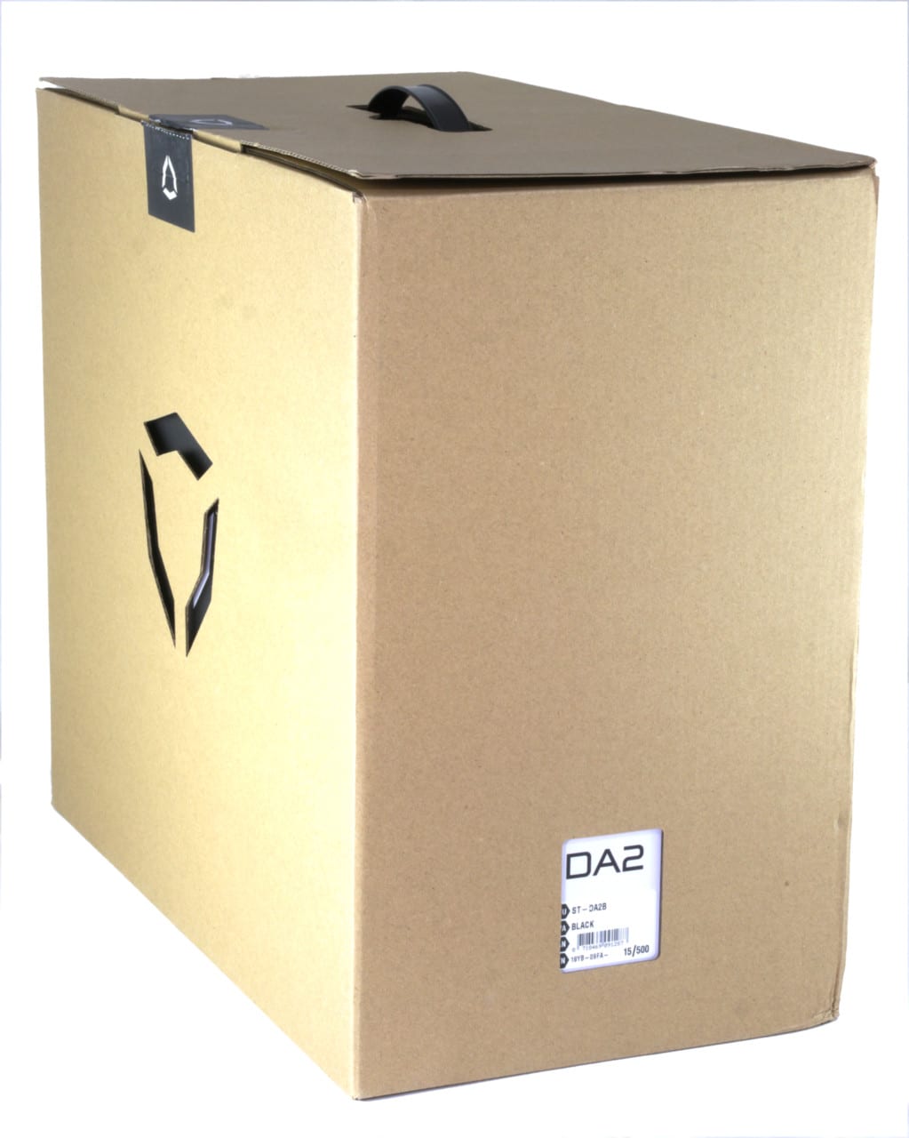 Streacoms DA2 wird in einem schwarzen Karton mit Umverpackung geliefert, der über einen Tragegriff verfügt. Das Gehäuse wird durch Schaumstoff gedämpft und von einer Gewebetüte geschützt.