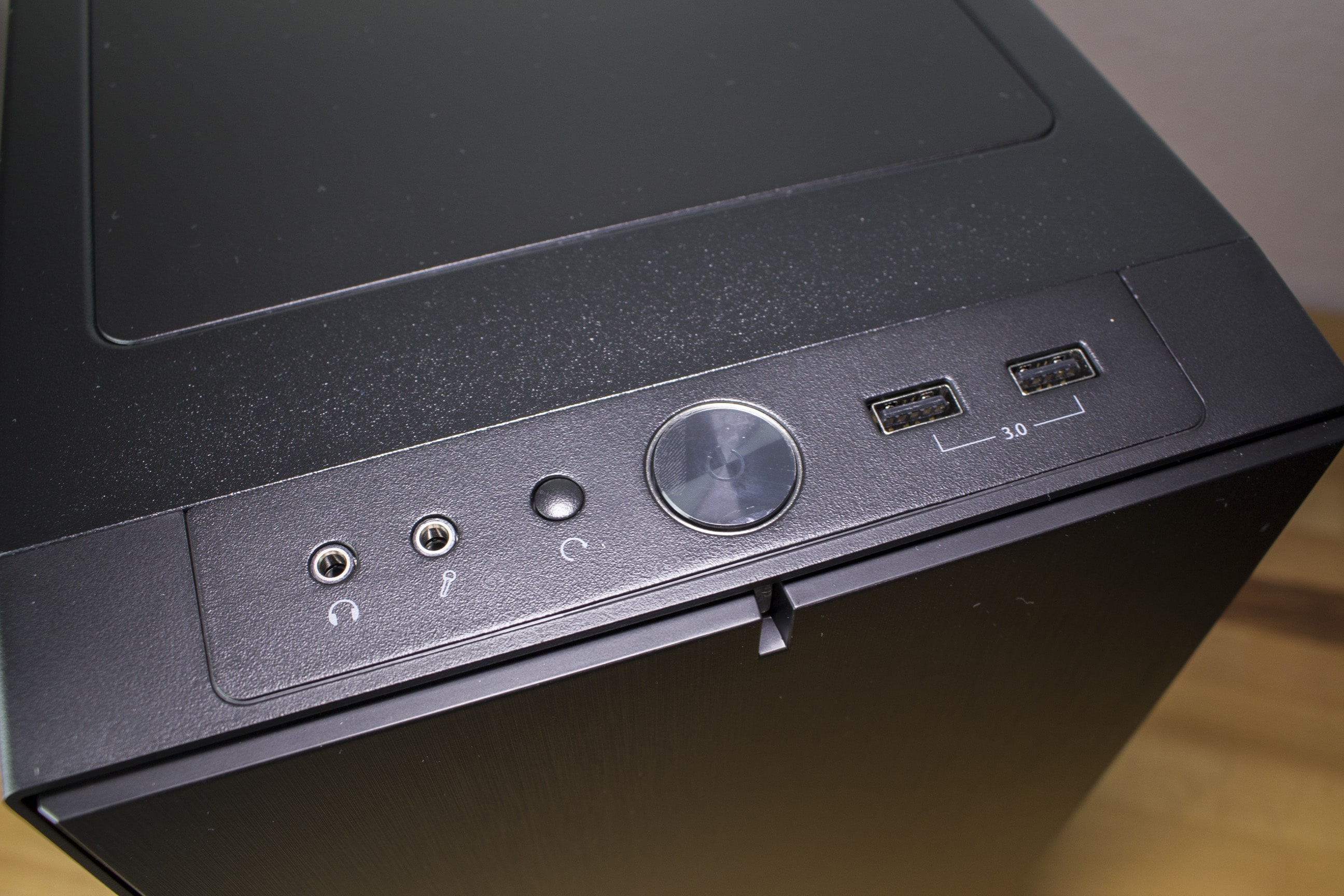 Auch am Frontpanel sind keine Veränderungen feststellbar. Hier sind wieder je ein Kopfhörer- und Mikrofonanschluss sowie zwei USB 3.0-Anschlüsse vorzufinden. Rückwärtig des Frontpanels findet sich die, mit dem Moduvent verschlossene, Gehäuseoberseite. Das Moduventmodul lässt sich von innen lösen und ist abnehmbar. Darunter befinden sich die beiden Lüfterplätze.