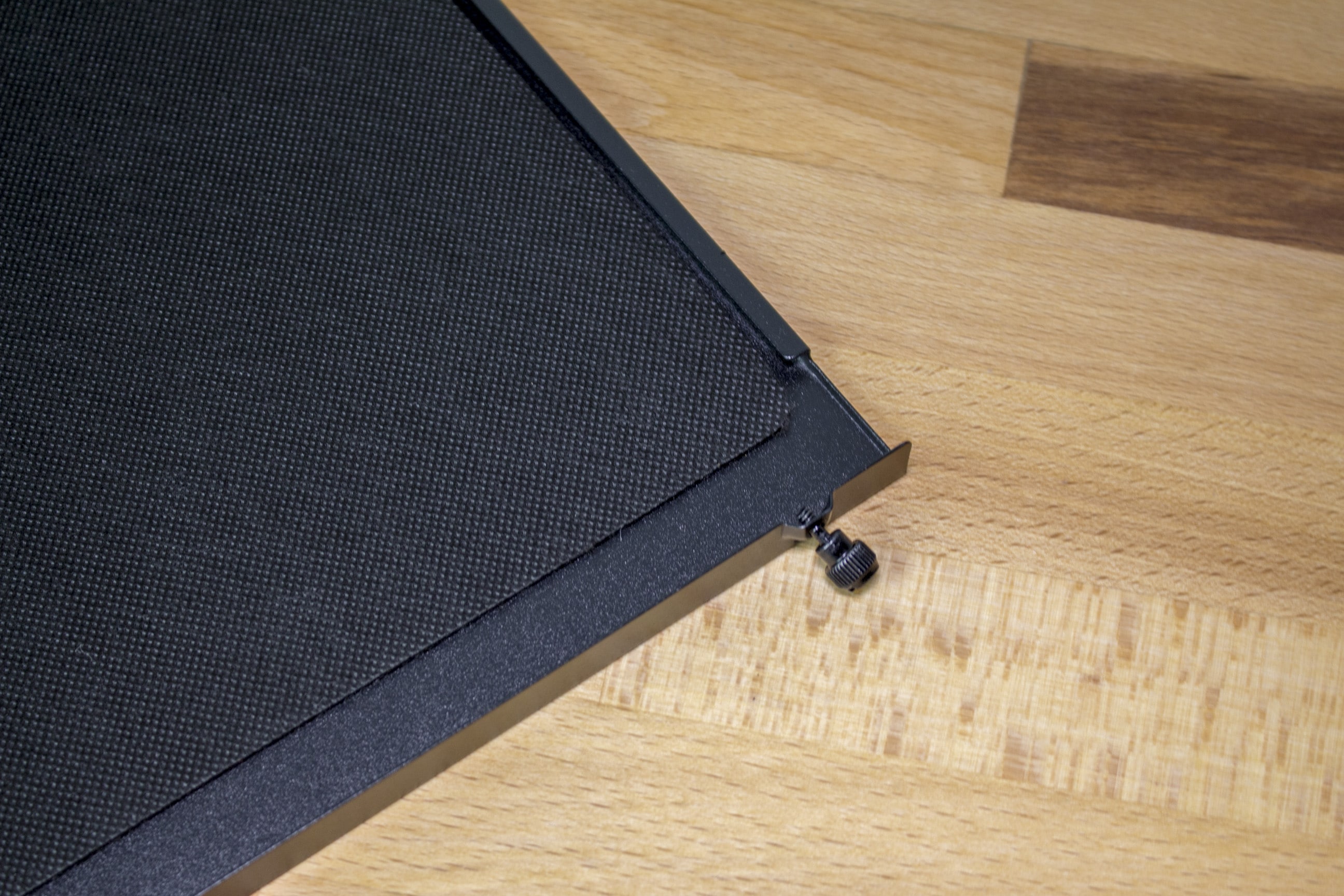 Zur Befestigung des Seitenteils kommen vier Gummipuffer zum Einsatz. Diese finden sich in den Gehäuseecken. Selbst die Schrauben sind gummiert und fungieren somit zeitgleich als Schutz vor Schäden und Dämmung.