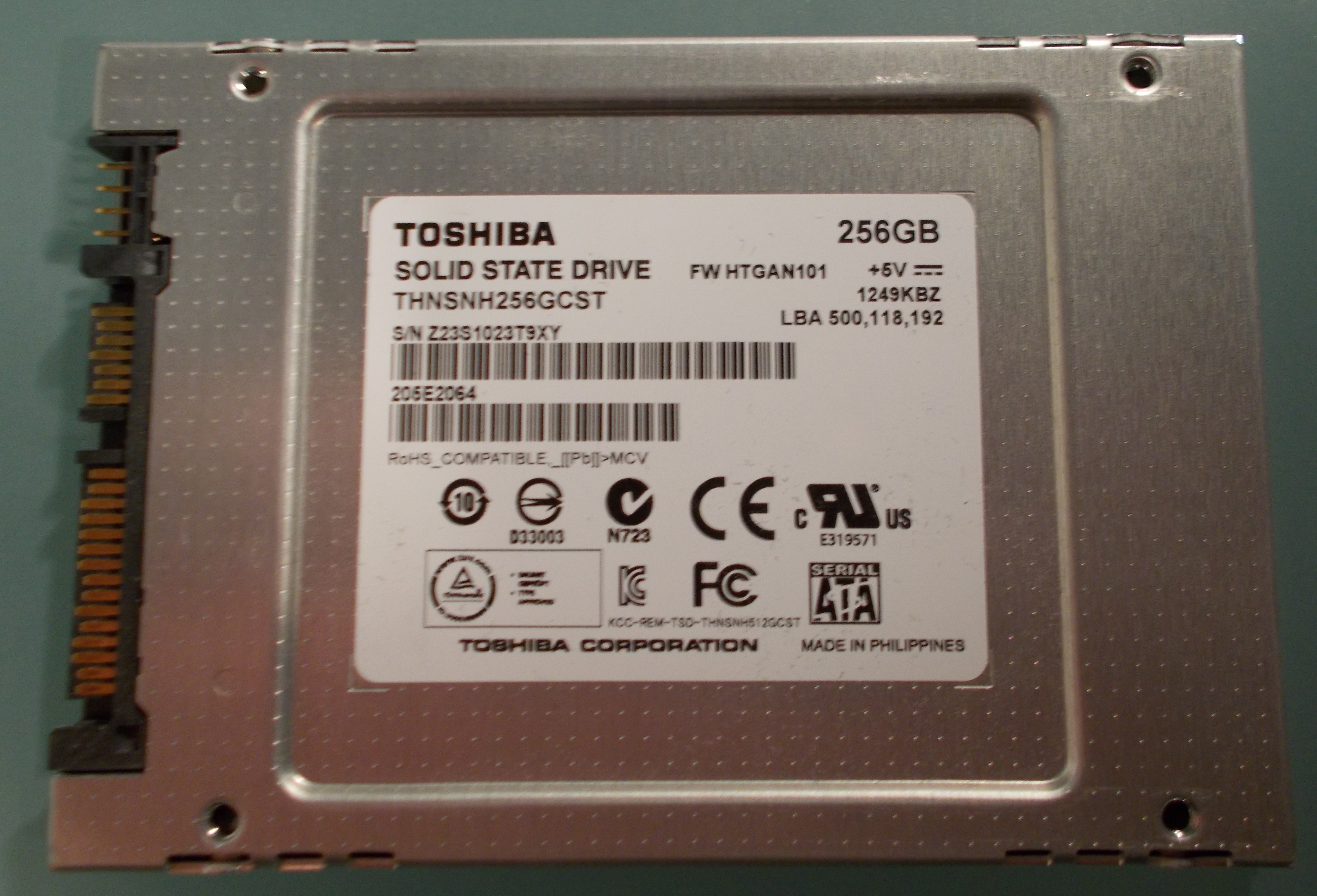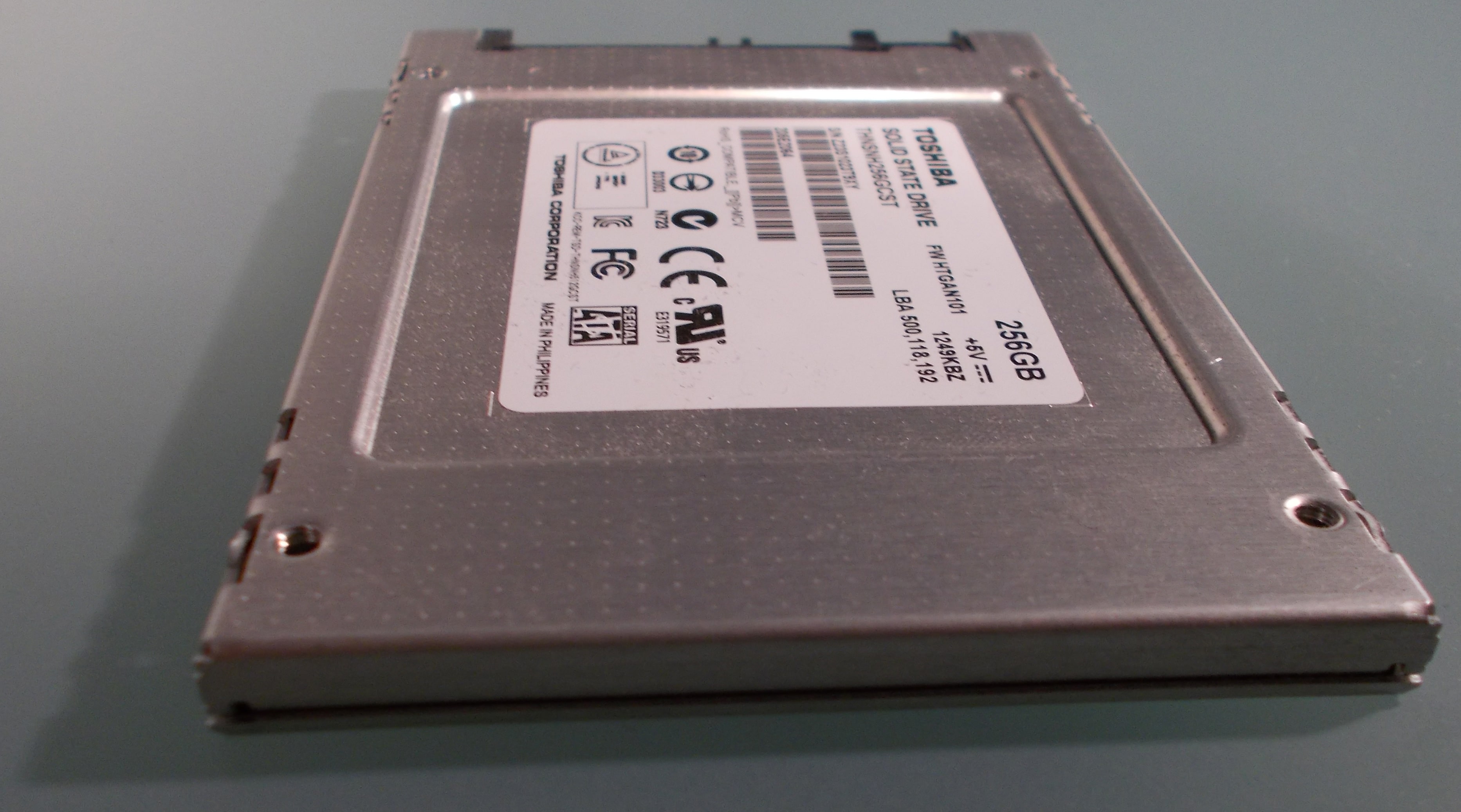 Dieses mal testen wir für euch eine SSD Festplatte mit 256GB Speicherplatz von Toshiba und zwar die THNSNH256GCST. Die Bezeichnung ist nicht wirklich ansprechend, doch die Festplatte wird auch vor allem für OEM-Geräte hergestellt. Die Bezeichnung ist zusammengesetzt aus „THNSNH“, was für das Model steht, gefolgt von der Kapazität. Das „GCST“ am Ende der Bezeichnung sagt aus, dass die Festplatte 2,5 Zoll misst und 7mm dick und somit auch mit Intel Ultrabooks kompatibel ist.