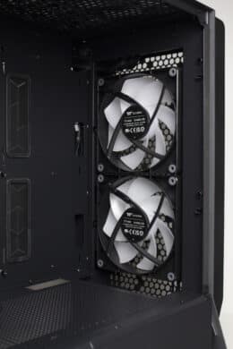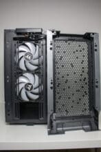 Viele negative Punkte konnten wir nicht finden und die, die wir gefunden haben, gehen bereits in Richtung „Meckern auf hohem Niveau“. So hätten wir uns zur Vereinheitlichung der Optik an der Rückseite einen dritten ARGB-Lüfter gewünscht. Gerade in Hinblick auf die vielen Marketing-Fotos auf denen häufig (aber nicht immer) ein ARGB-Lüfter am Heck zu sehen ist. Außerdem wirkt der Staubfilterrahmen im Deckel etwas klapprig und der verwendete Stahl hätte stellenweise etwas stärker sein können.
