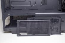 Leider kommt der luftige Aufbau des Ceres 300 TG ARGB mit einem gewissen Nachteil daher. Dieser Midi-Tower bietet für Datenträger nicht besonders viel Platz. Der einzig mögliche Montagepunkt ist an der Rückseite des Mainboard-Trays zu finden. Der entsprechende Stahlrahmen bietet Platz für eine einzelne 3,5″- oder zwei 2,5″-HDDs/ SSDs. Die Montage erfolgt mittels Schraubendreher und herkömmlicher Schrauben. Eine Entkopplung der Datenträger bietet der Rahmen nicht.