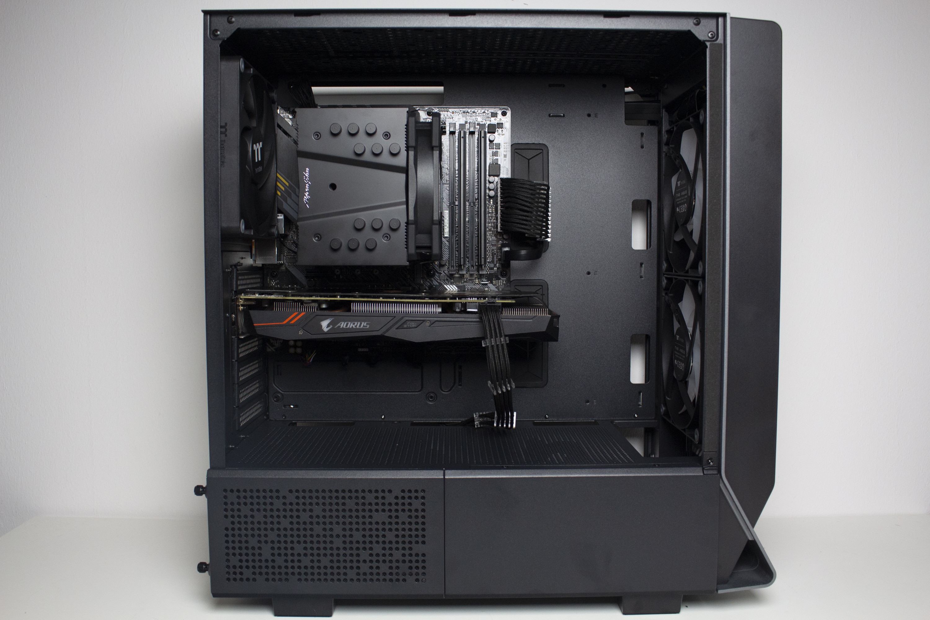 Aufgrund des luftigen Designs der Front- und Deckelpartie gibt es beim Belastungstest der Komponenten keine großen Überraschungen. Bei voller Drehzahl werden hervorragende Temperaturwerte erreicht. Wie zu erwarten sind die Lüfter mit 1500 Umdrehungen pro Minute aber klar hörbar und für viele sicher störend. Durch den PWM-Anschluss können sich aber glücklicherweise aller Lüfter sehr einfach über das Mainboard-BIOS regeln lassen. Bei einer Minimaldrehzahl von 550 Umdrehungen pro Minute sind die Lüfter nicht mehr hörbar und selbst hier bleiben die Temperaturen des Testsystems weiterhin im unkritischen Bereich. Deshalb sind wir uns sehr sicher, dass das Ceres 300 TG ARGB auch problemlos High-End-Hardware kühl halten kann, wenn auch nicht gerade bei Minimaldrehzahl.