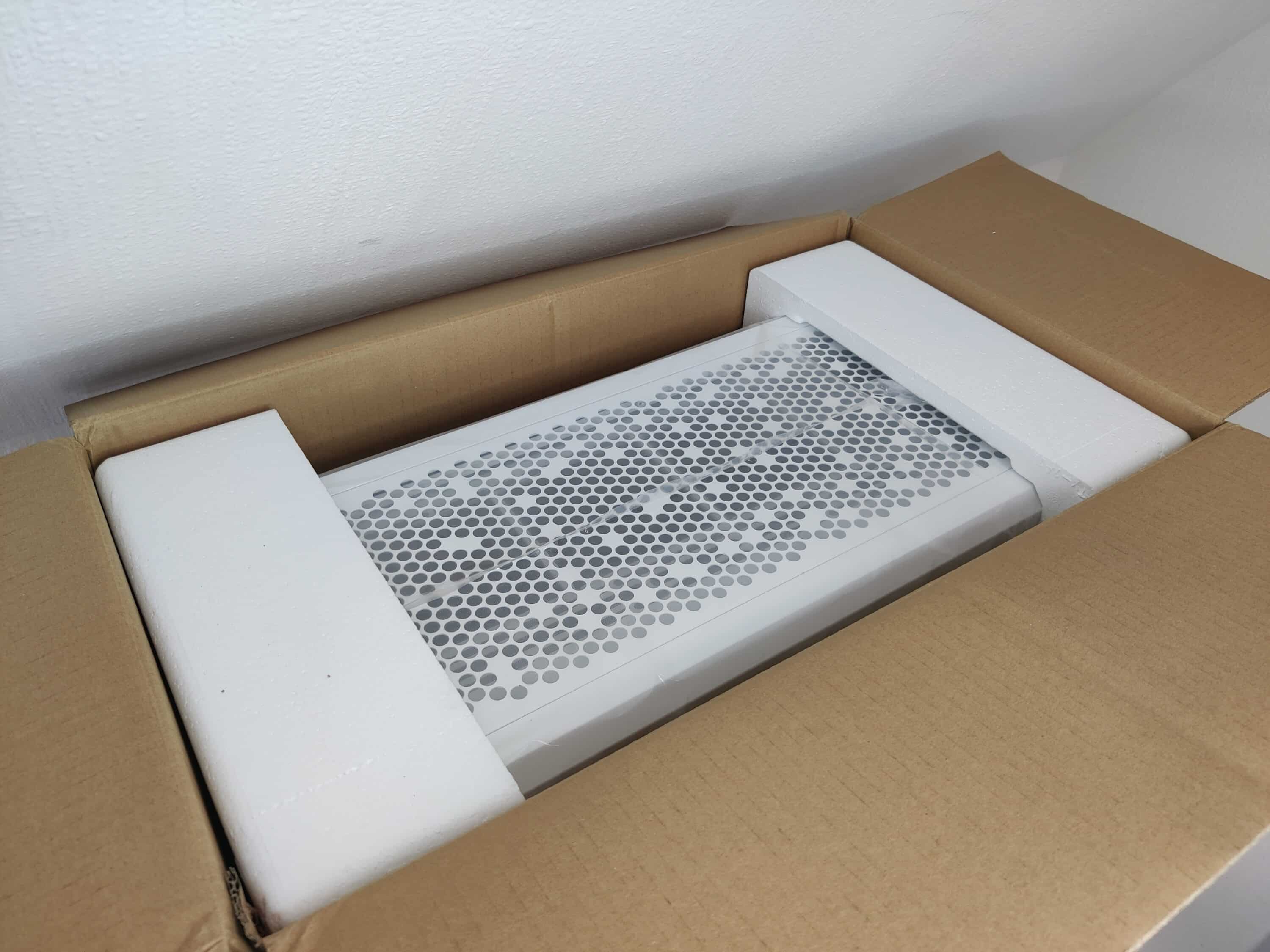 Das 3,9 Zoll große Display des LCD Panel Kits ist mittig an dem Seitenteil angebracht und löst mit 128 auf 480 Pixel auf. Mit dieser Auflösung liegt die Pixeldichte bei 127 PPI. Beim Auspacken fiel uns persönlich auf, dass das Display doch etwas klein ausfällt und gerne etwas größer hätte sein dürfen. Schließlich ist das Seitenteil platztechnisch nicht beschränkt, sodass an jeglichen Seiten ausreichend Platz frei wäre.