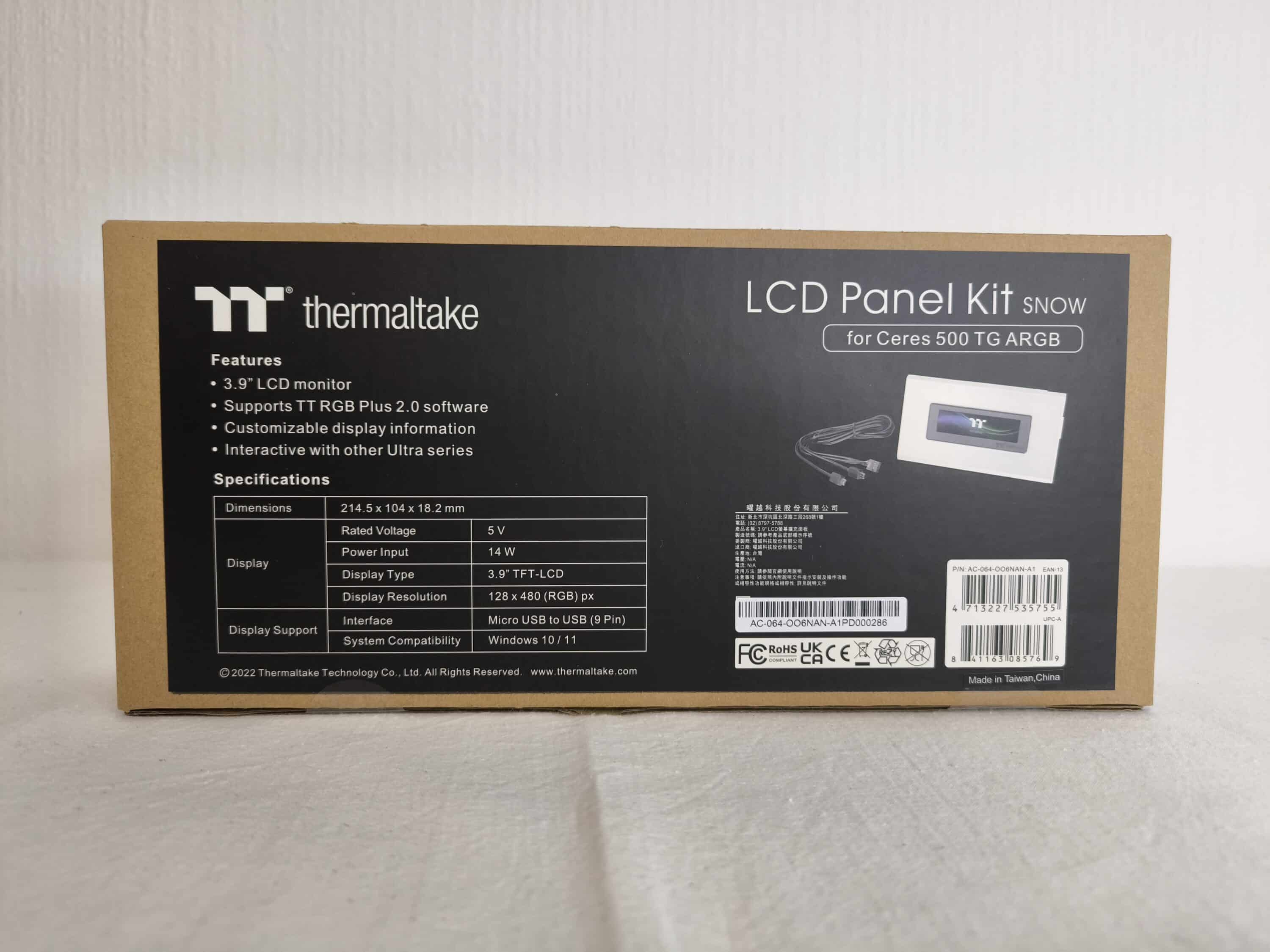 Um den Midi-Tower optisch aufzuwerten und einige nützliche Infos an der linken Seitenwand einbinden zu können, bietet Thermaltake ein optionales Display an. Das LCD Panel Kit steht sowohl als schwarze wie auch als weiße Variante für die Ceres 500-Reihe zur Verfügung. In unserem Test greifen wir auf die schneeweiße Version zurück, weshalb der Hersteller diese auch mit dem Zusatz „Snow“ vermarktet.