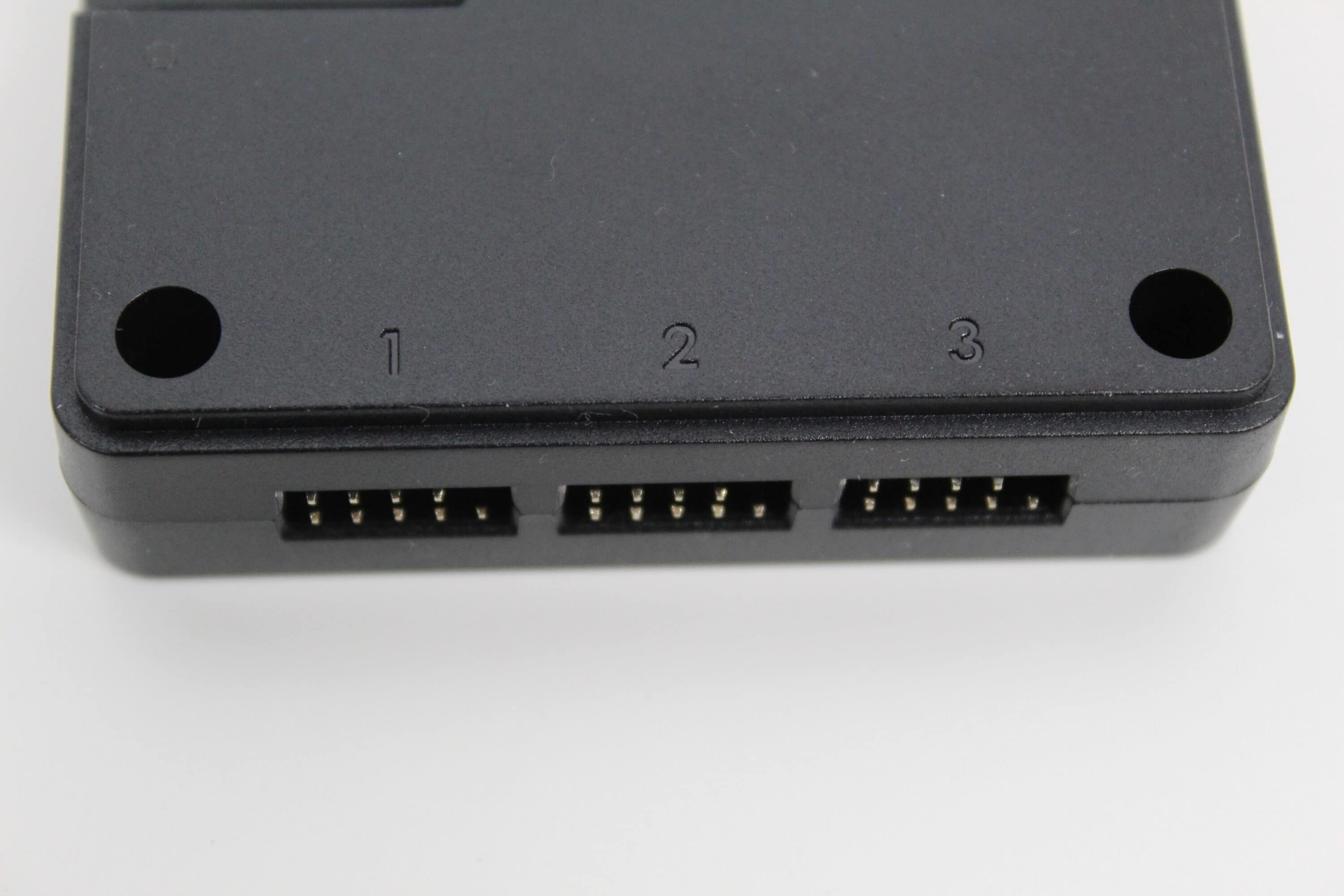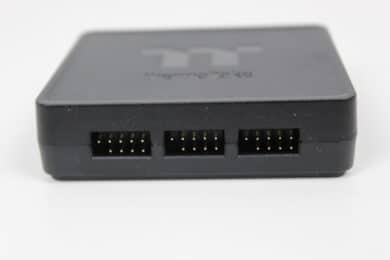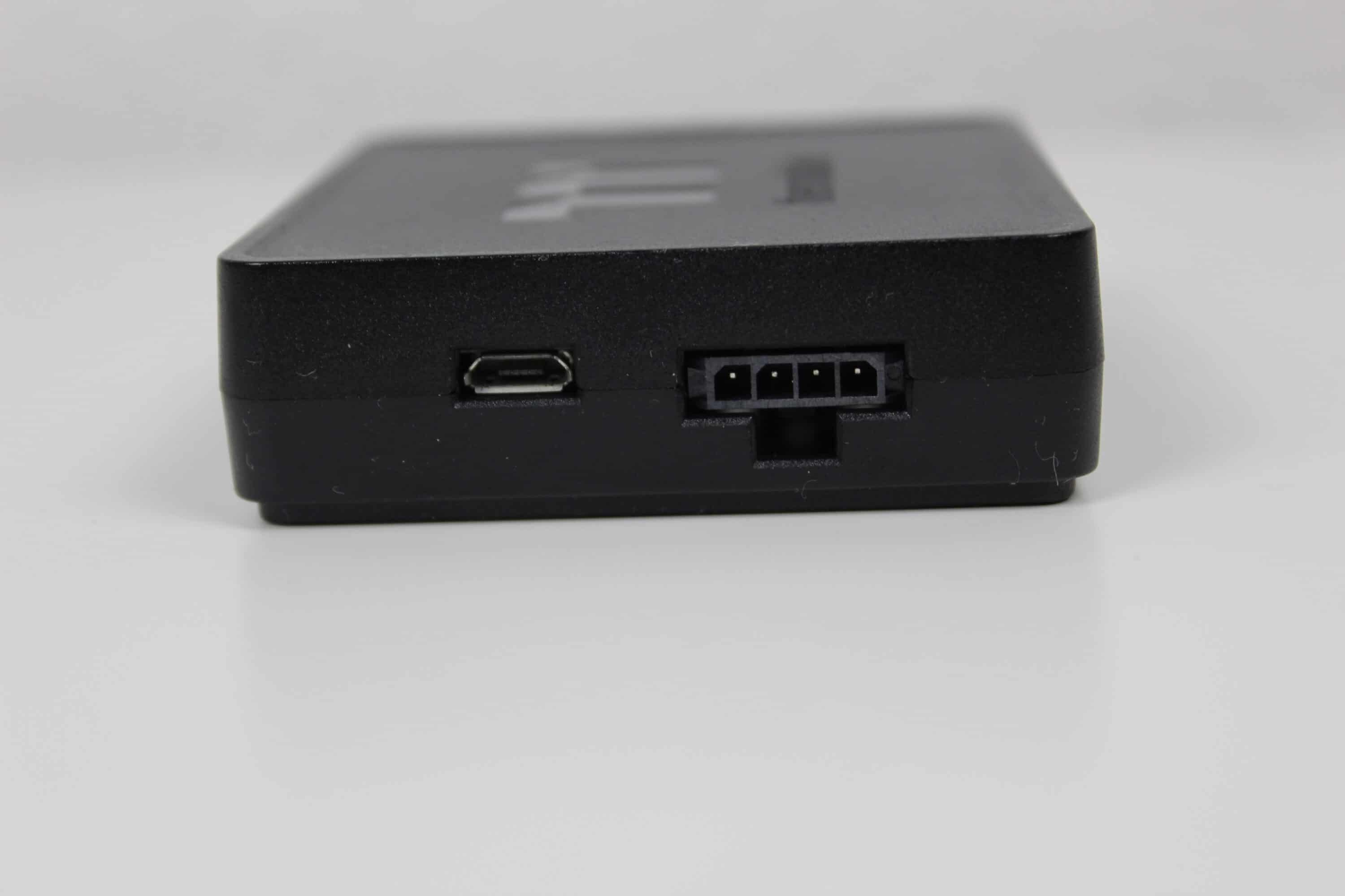 Die Anschlüsse befinden sich an den Seiten und sind durchnummeriert. Möchte man einen „Ablauf“ der Beleuchtung, so kann man hier durch das richtige Anstecken die Reihenfolge definieren. Darüber hinaus gibt es einen Anschluss für die Stromversorgung, welcher leider mit Molex angebunden wird, einen zum Anschluss an den USB-Header des Mainboards und einen, um den Controller mit weiteren Controllern zu verbinden.