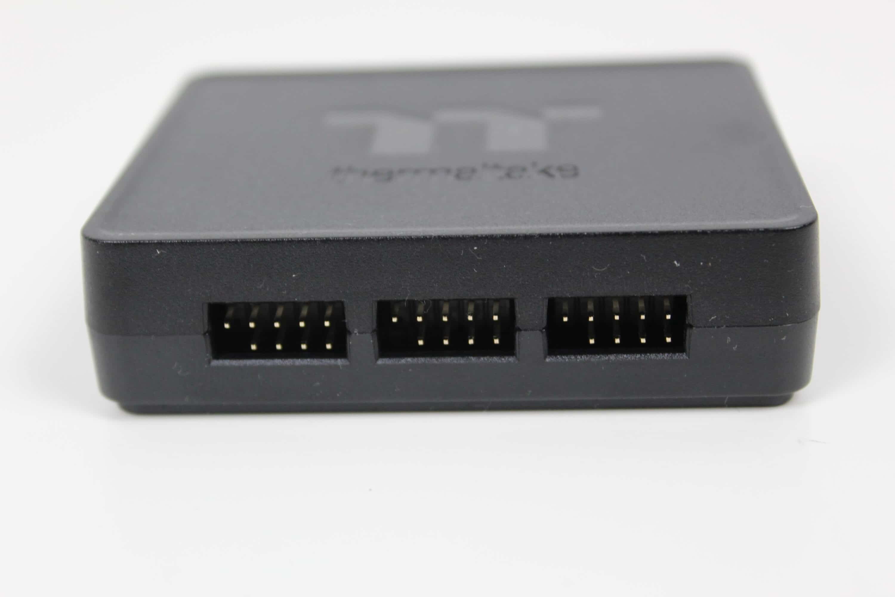 Die Lüfter werden ausschließlich am Controller angeschlossen – somit ist dieser ein wichtiges Bestandteil des Sets. Dieser ist optisch zunächst nicht besonders beeindruckend – erfüllt jedoch seinen Zweck. Es können bis zu fünf Lüfter angeschlossen werden, zusätzlich können mehrere Controller in Reihe geschaltet werden.