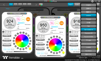 Da der Controller komplett softwareabhängig ist, ist es natürlich wichtig, dass wir uns auch diese genauer anschauen. Grundlegend ist die Software TT RGB Plus für die Steuerung notwendig – über diese kann man die Beleuchtung und die Drehzahl regulieren.