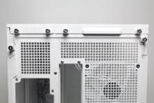 Gemessen an seinem Innenvolumen bzw. der generellen Größe, wiegt dieser Midi-Tower mit circa neun Kilogramm so viel, dass man zunächst eine ausreichende Materialstärke vermuten sollte. Das trifft auch größtenteils auf die Bereiche des View 380 XL TG ARGB zu. Das Mainboard-Tray und umliegende Bereiche sind sehr stabil und verwindungssteif aufgebaut. Etwa anders sieht das jedoch bei dem Lüftergitter im Deckel sowie dem rechten Seitenteil aus. Durch die sehr offene Gitterstruktur verlieren beide Elemente leider etwas an Stabilität. Die sonstige Verarbeitung ist ansonsten aber sehr gut. Es gibt keine scharfen Kanten, Kratzer oder Beulen und auch die Lackierung hinterlässt einen mehr als vorzeigbaren Eindruck.