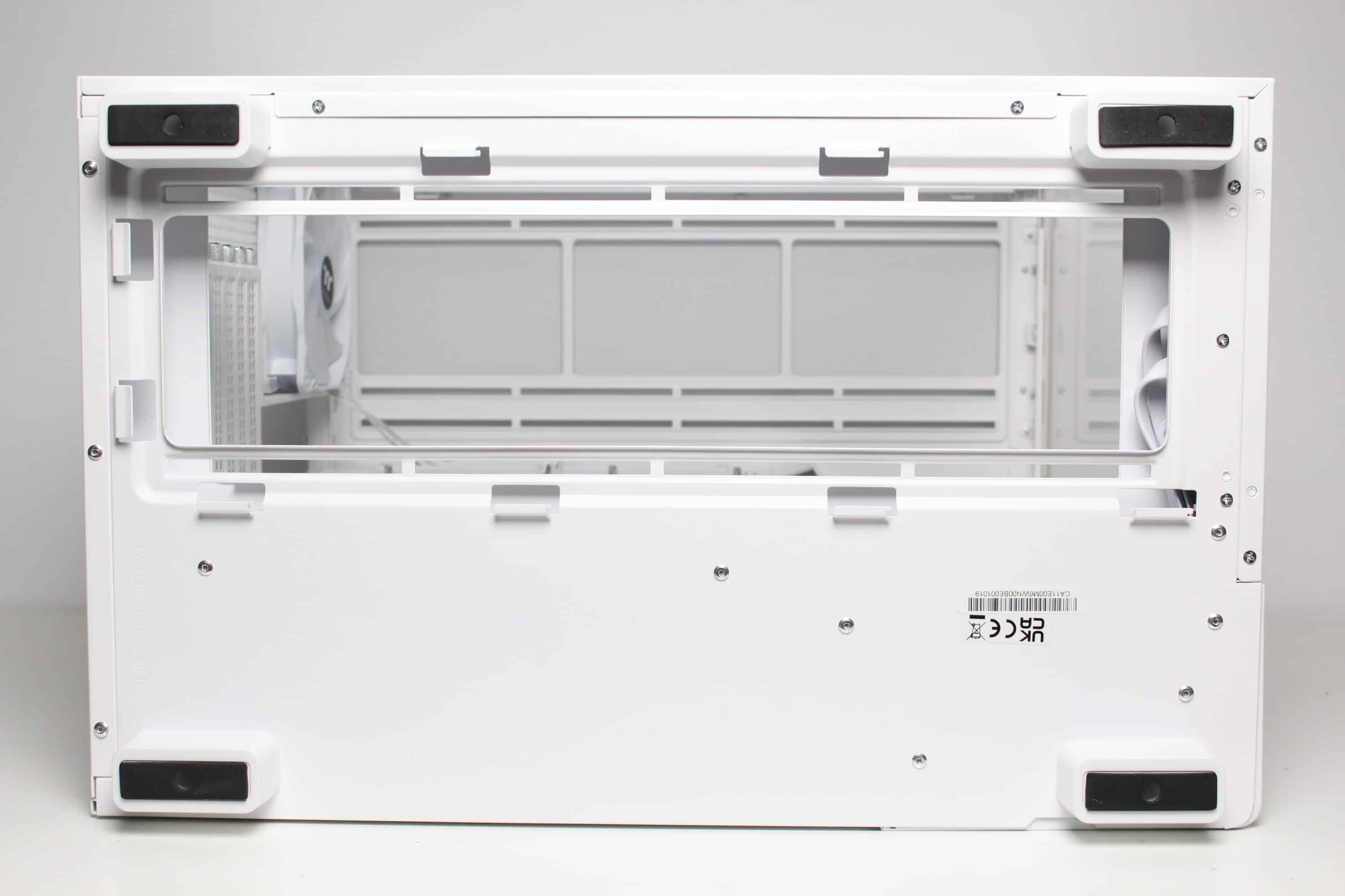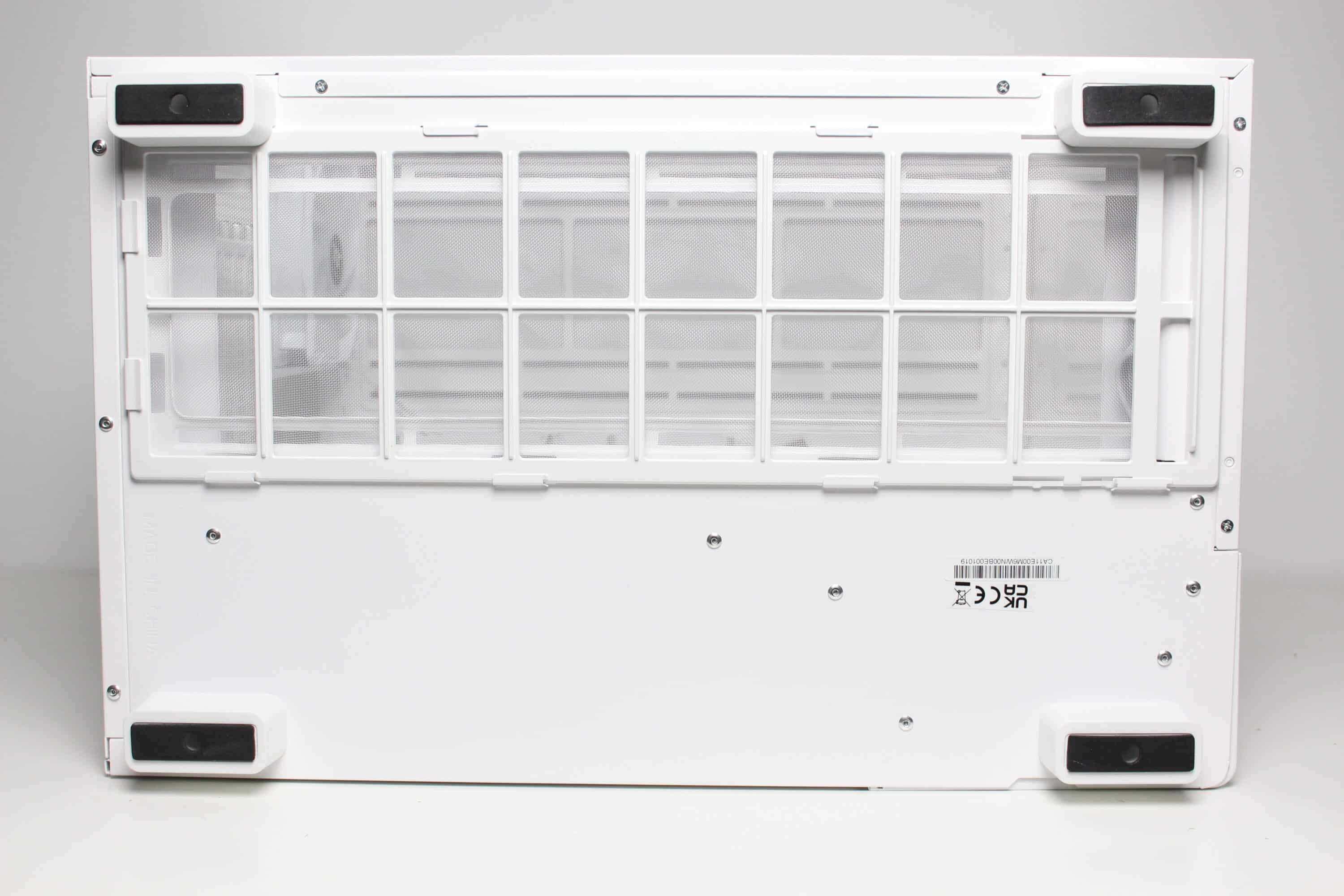 Einen sicheren Stand erhält das Thermaltake View 380 XL TG ARGB durch vier stabile Kunststofffüße, die zur Minimierung von Vibrationen sowie zum Schutz des Untergrundes mit einer Schicht Gummi beklebt wurden. Außerdem hat der Hersteller hier eine wenig restriktive Belüftungsöffnung mit Montagepunkten für bis zu drei 120-mm-Lüfter in die Unterseite schneiden lassen. Darüber wurde ein feinmaschiger Staubfilter platziert, der zur Säuberung einfach nach vorne entfernt werden kann.