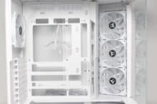 Aufgrund seines Innenvolumens von fast 64 Litern bietet das View 380 XL TG ARGB ausreichend Platz für Hardware. CPU-Kühler dürfen 160 Millimeter hoch und Grafikkarten beachtliche 420 Millimeter lang sein. Für das Netzteil gibt Thermaltake eine maximale Länge von 180 Millimetern an. Möchte man eine Wasserkühlung im Innenraum verbauen, dann sollten theoretisch gleichzeitig zwei 360-mm-Radiatoren an der Seite und im Deckel passen.