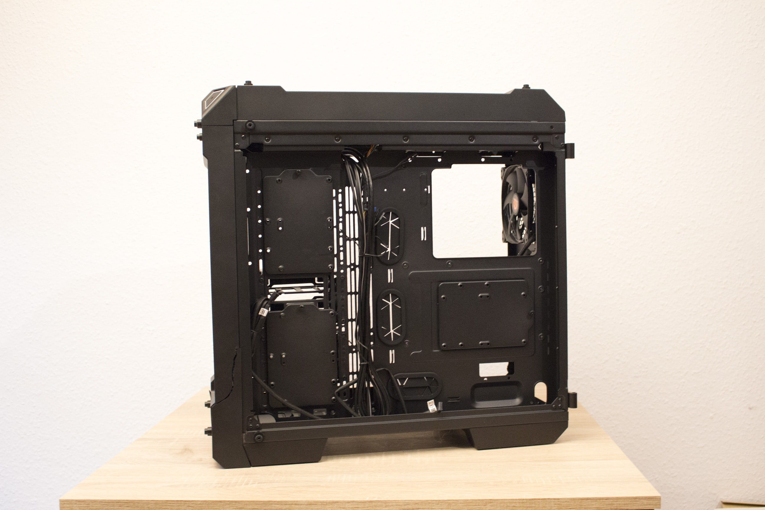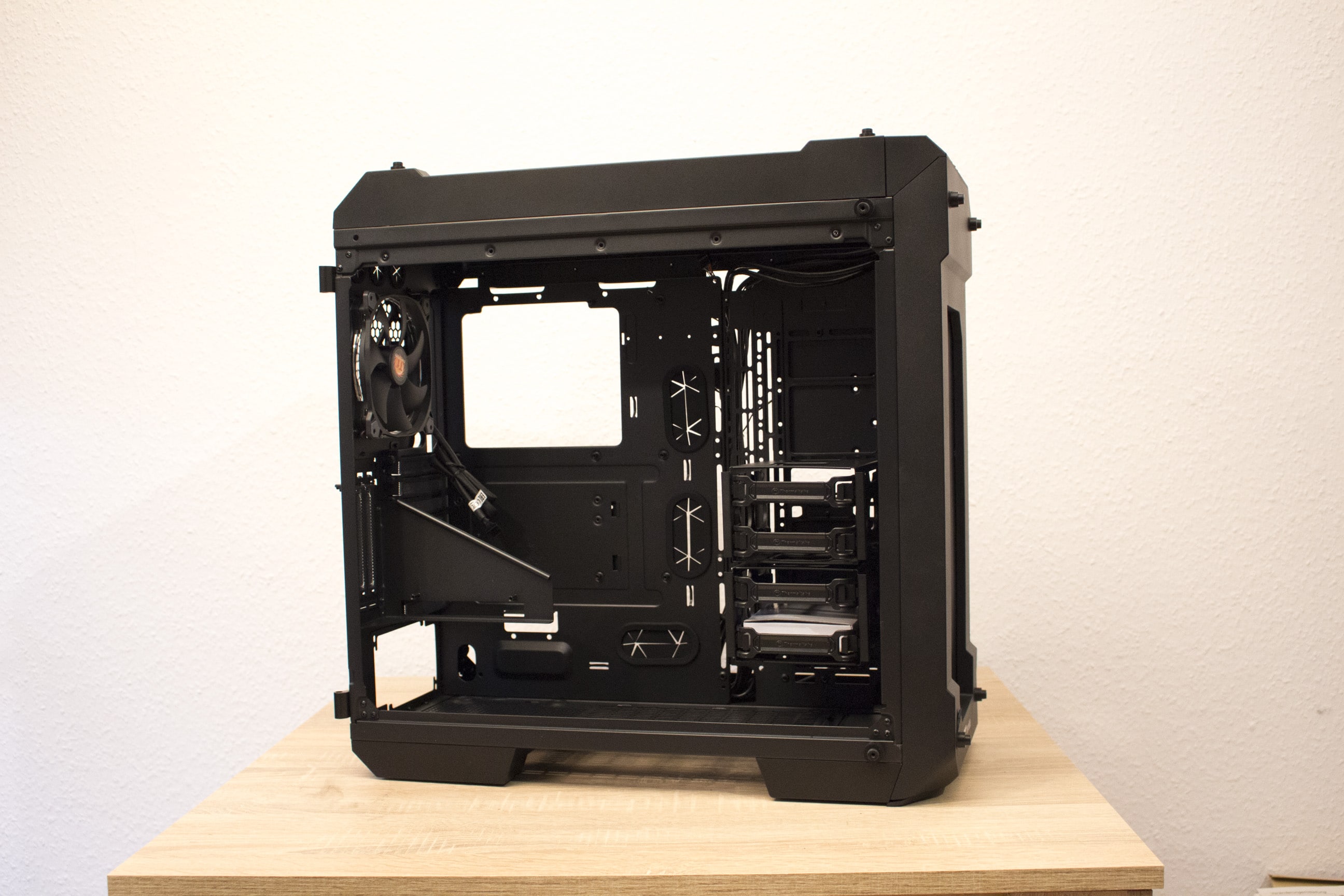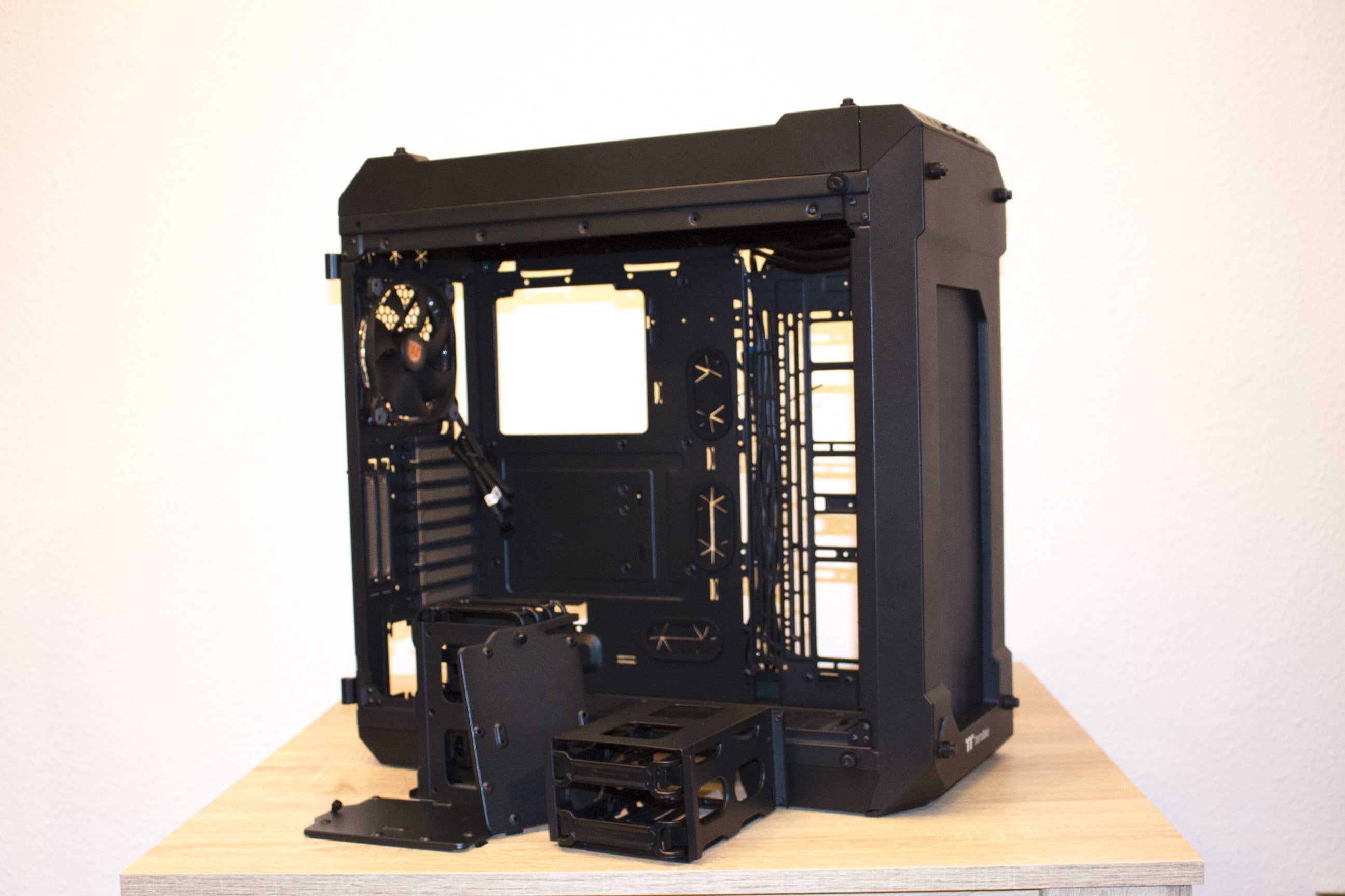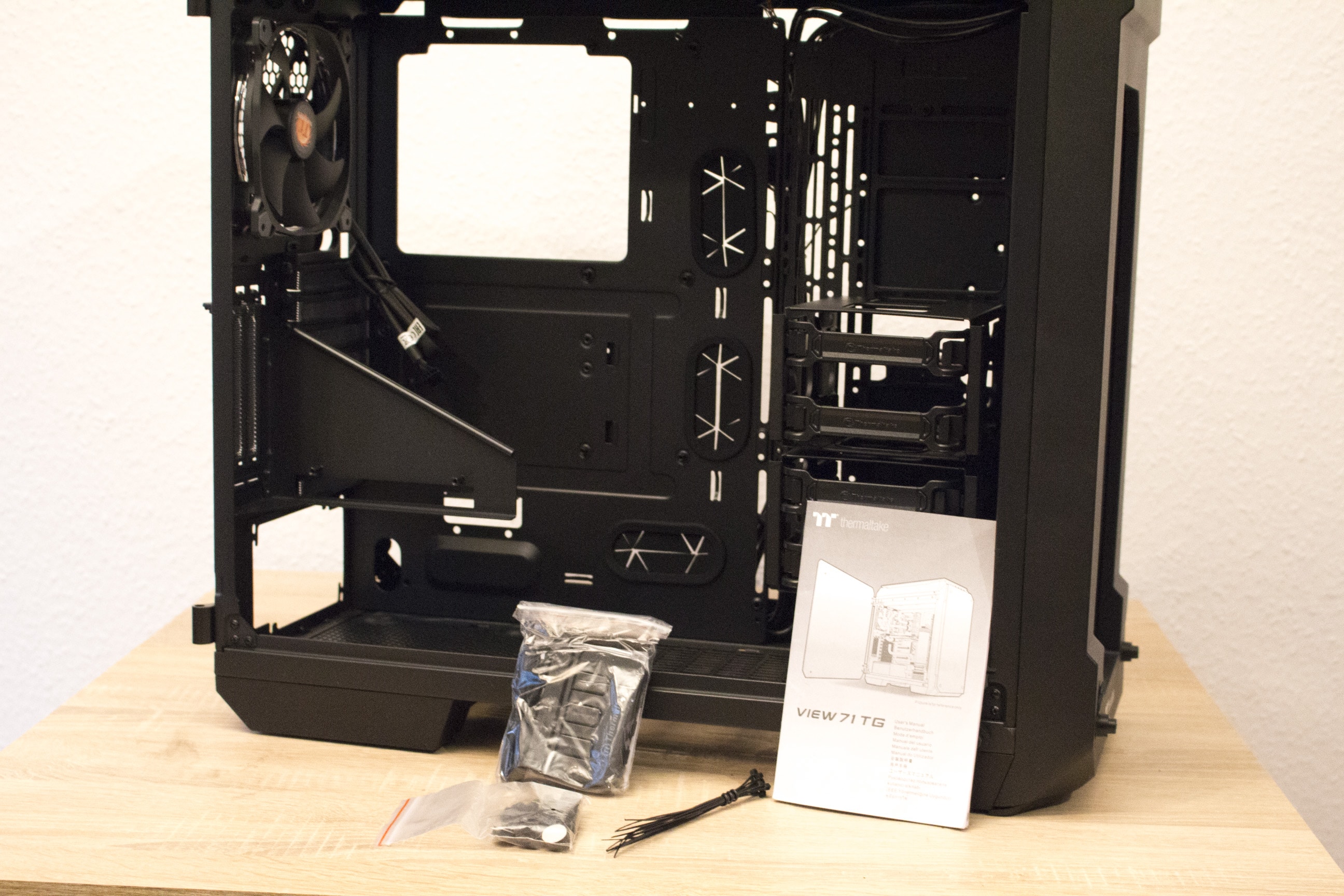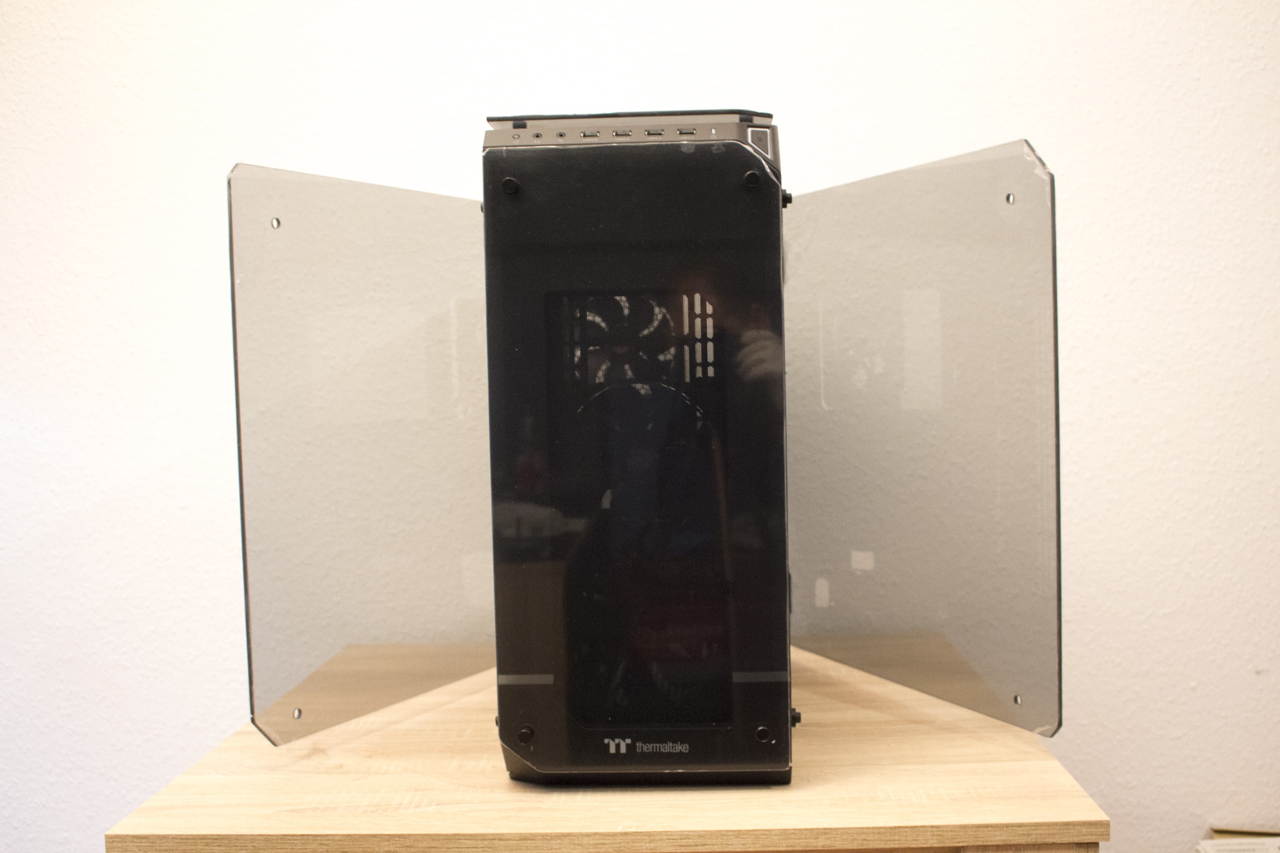 Die Verarbeitung ist top. Die Verpackung ist ebenfalls gut. Dass mein Review-Sample beschädigt bei mir ankam, kann ich also nicht Thermaltake anlasten. Shit happens. Bis auf die gebrochene Frontverkleidung hinter dem Temperglas, welches unbeschädigt war, konnte ich keine Mängel erkennen. Mit einem Gewicht von 22 kg (mit Verpackung) erwartet man eine solide Konstruktion – und bekommt diese auch geliefert!