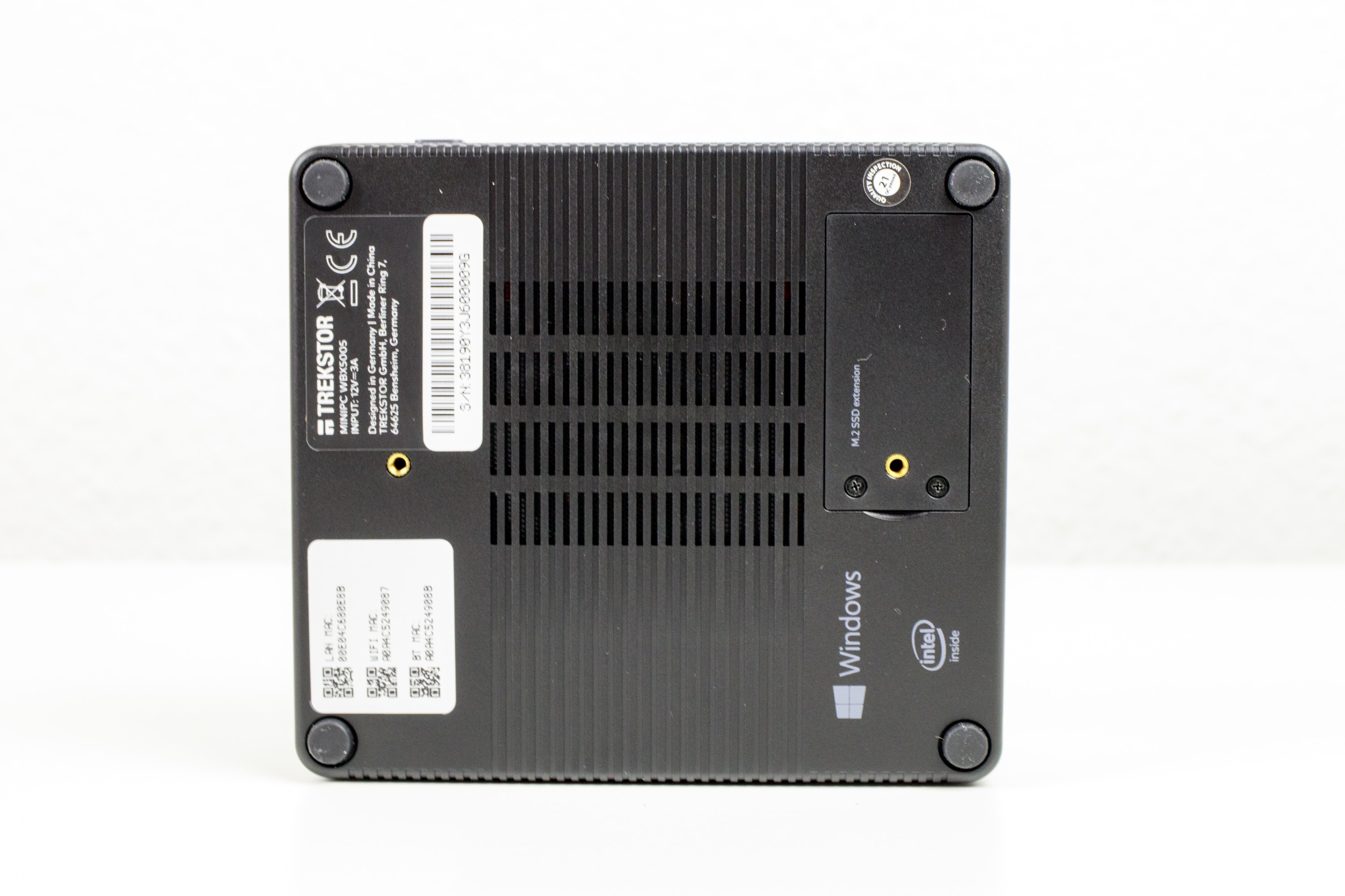 Auszeichnendstes Merkmal des Geräts ist wohl seine geringe Größe. Mit Maßen von nur 11,2 x 12,4 x 4,5 Zentimetern passt der Mini-PC auch in schmalste Ecken. Auf dem Schreibtisch fällt er darüber hinaus nicht sonderlich auf – was Trekstor (ausgehend von angenommener Leistungsstärke) zum wenig kreativen Werbespruch „Kann sich verstecken – muss es aber nicht“ bewogen hat. Dass das Gerät versteckt werden kann, können wir ihm zweifelsohne attestieren. Allerdings ist das nicht sonderlich außergewöhnlich, ist die geringe Größe doch Kernmerkmal eines jeden Mini-PCs, der diese Bezeichnung verdient.
