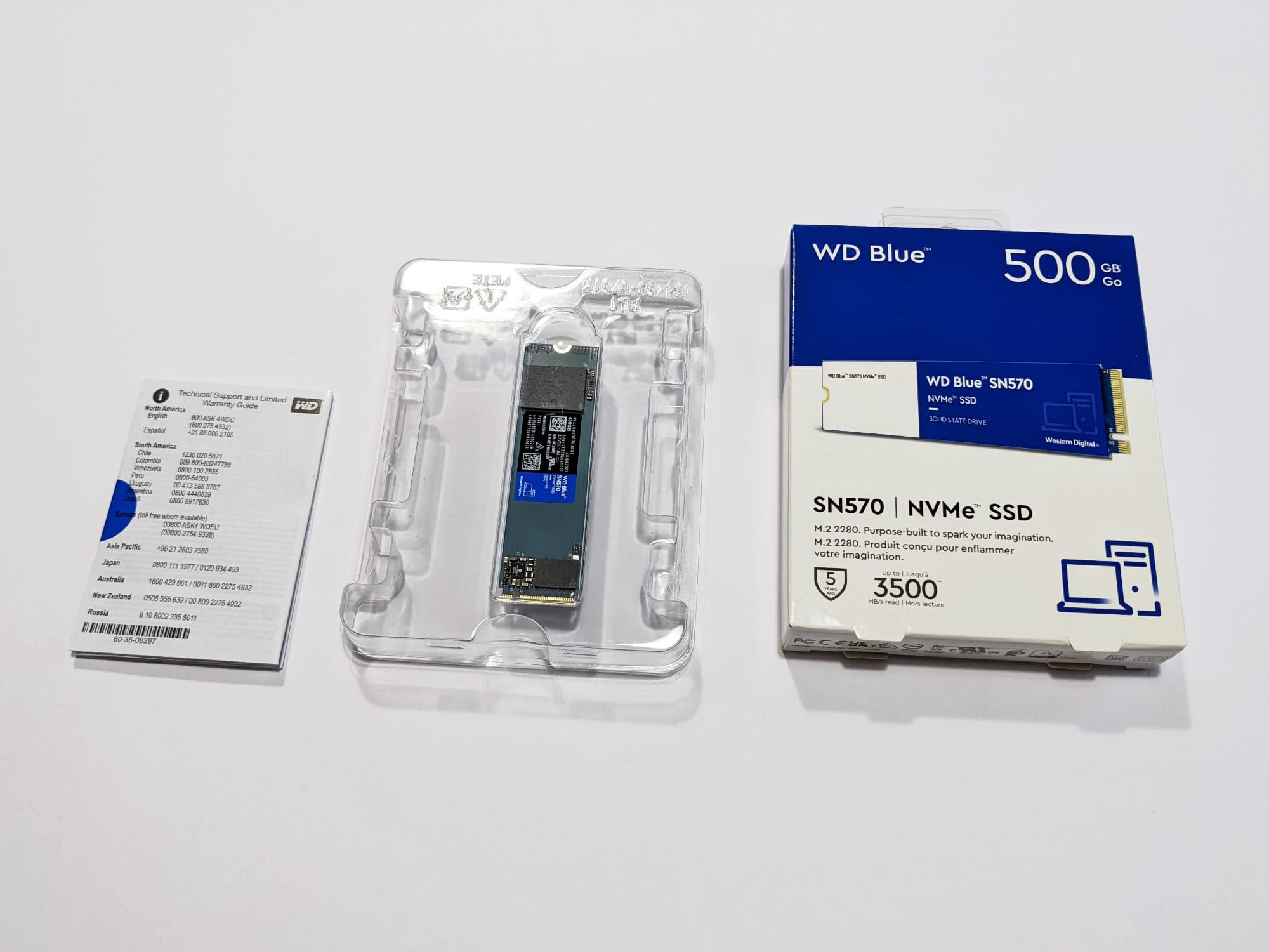 Western Digital liefert die WD Blue SN570 in einem weiß blauen Karton aus, der stark an die anderen Produkte der Blue-Reihe erinnert. Neben der SSD finden wir nur eine Anleitung im Karton vor.