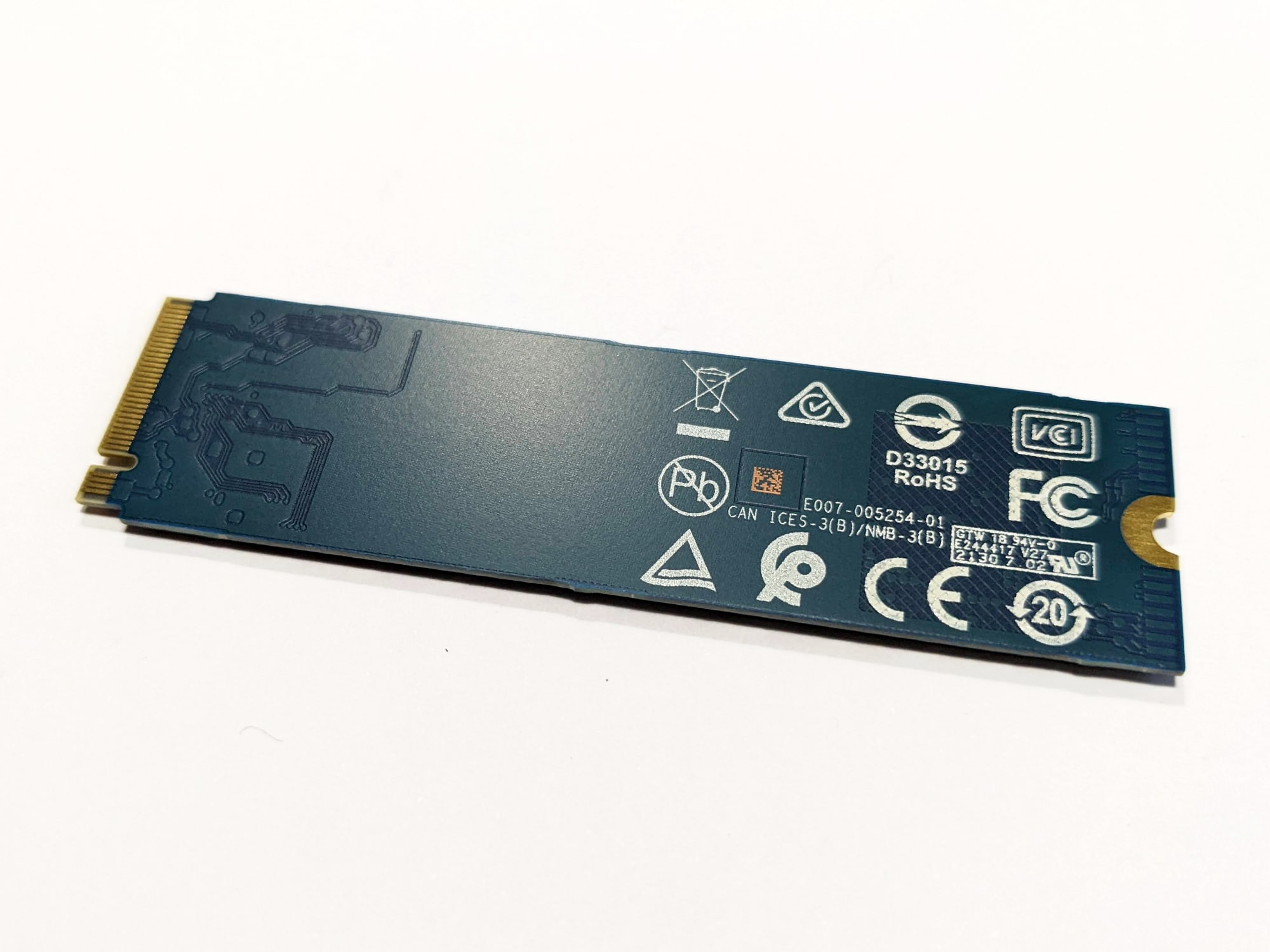 Passend zum Namen verwendet Western Digital ein blaues PCB. Dieses ist nur einseitig bestückt und sehr aufgeräumt. Der SanDisk 20-82-10048-A1-Controller sitzt nah an der M.2-Schnittstelle, am anderen Ende der Platine sitzt der NAND-Flash-Speicher. Die WD Blue SN570 ist nur ohne Kühlkörper erhältlich.