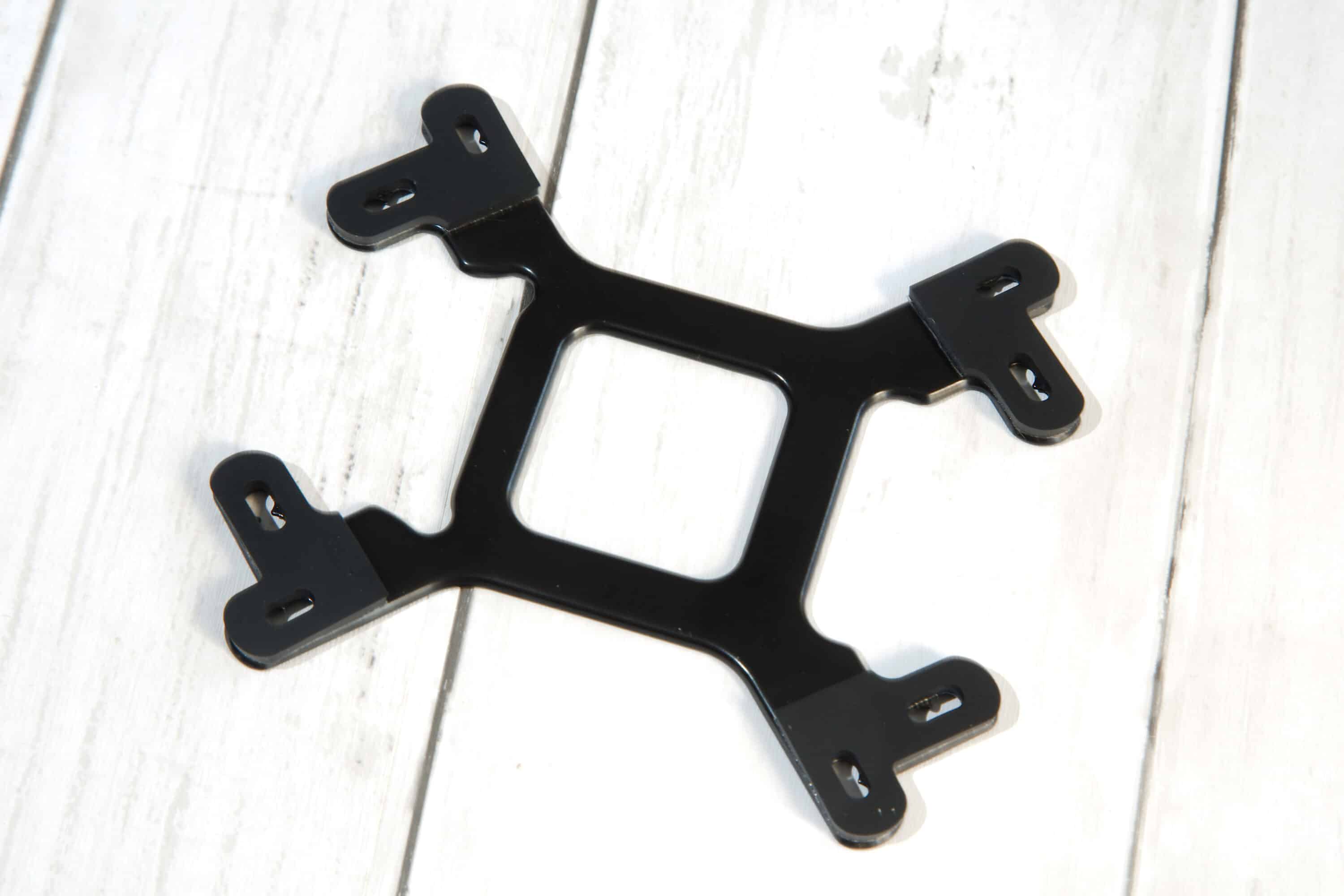 An der Pumpeneinheit wird der korrekte Rahmen über einen Bajonett-Verschluss befestigt. Nachdem nun die Wärmeleitpaste auf den Prozessor aufgetragen ist und die Schutzfolie von der Kontaktfläche entfernt wurde, wird die Pumpeneinheit aufgesetzt und mit Rändelmuttern auf den Schrauben festgezogen. Für das letzte bisschen kann man mit einem Schraubendreher den Anpressdruck etwas erhöhen. Nur vorsichtig sein, nicht übertreiben.