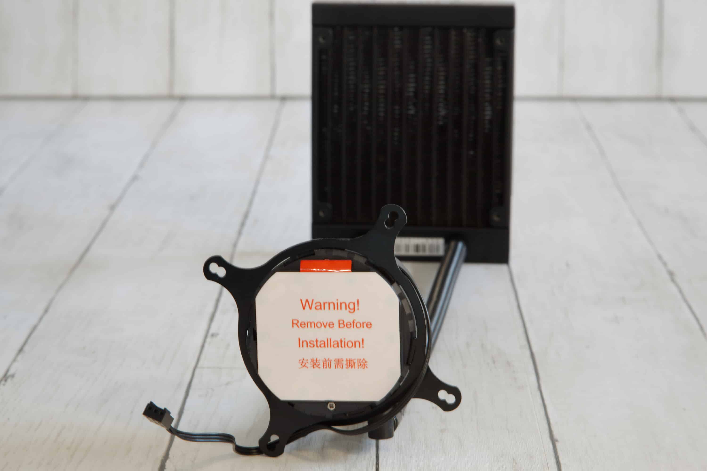 Die Schläuche sind sauber gefertigt und liegen dank Sleeving nicht frei. Die Pumpeneinheit sitzt zwar in einem Gehäuse aus Kunststoff, doch wirkt dieses recht ordentlich. Beim Schütteln des Radiators ist deutlich wahrnehmbar, dass sich etwas Luft im System befindet.
