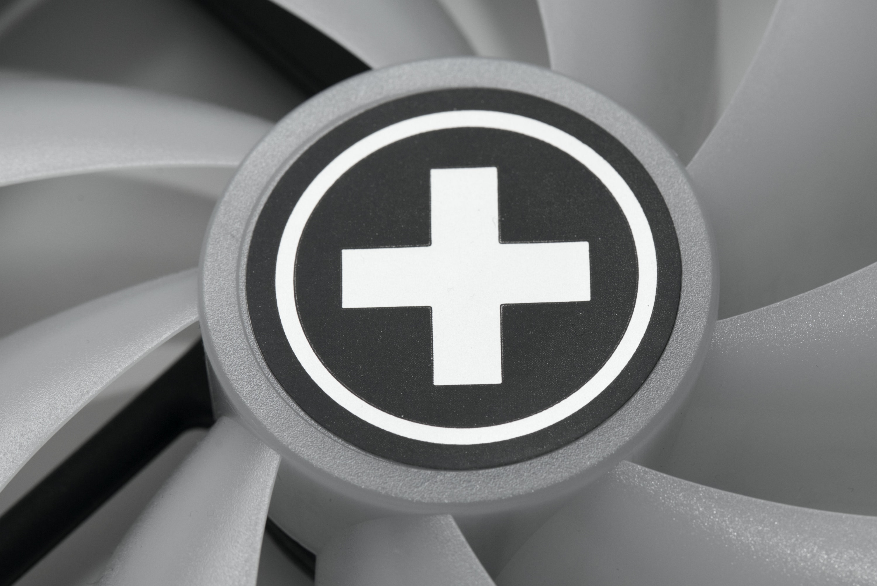 Die Xilence XPF120.ARGB – hier in der schwarzen Version – sind recht einfach gehalten. Ein mattschwarzer Rahmen ohne herausstechende Details ist kombiniert mit milchig-weißen Lüfterblättern, die das Licht der LEDs in der Mitte des Lüfters gut streuen können. Ergo sind die Lüfterblätter RGB-beleuchtbar. Mittig sitzt vorne ein Aufkleber mit dem Xilence-Logo, dem silbernen Kreuz.