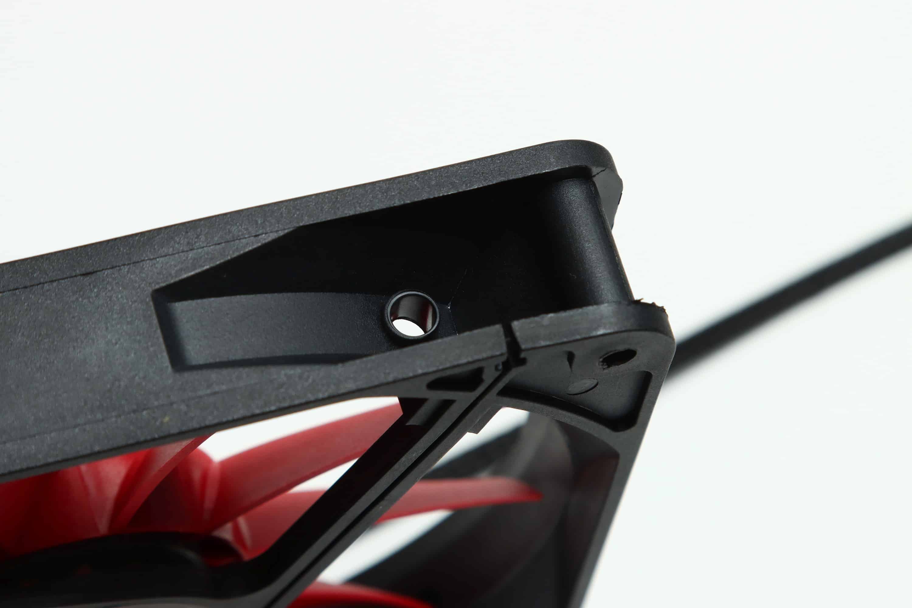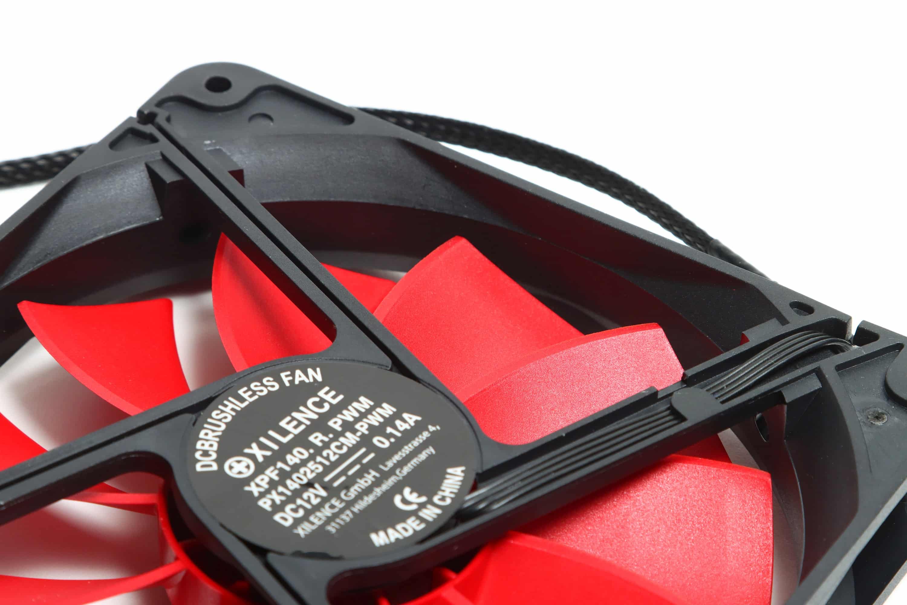 Das Design der typischen Xilence-Lüfter, zu denen auch der Xilence XPF140.R.PWM gehört, ist sehr charakteristisch, aber aus optischer Sicht schwer mit anderen Lüftern zu kombinieren, wenn man einen einheitlichen Look durchziehen will. Ein schwarzer Rahmen und rote Lüfterblätter – komplett unbeleuchtet.