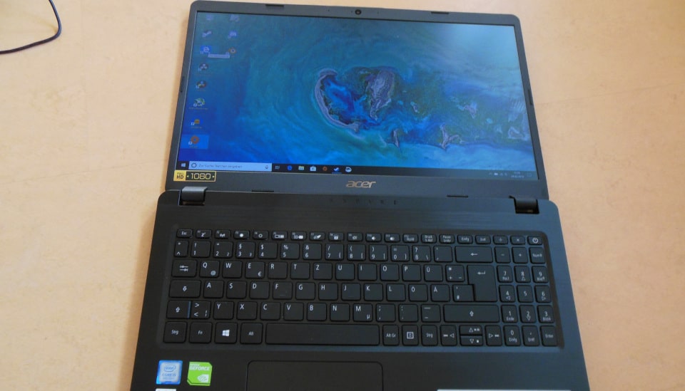 Acer stattet das Testgerät mit aktueller Hardware aus: Der Intel Core i5-8265U, der zur Whiskey-Lake-Familie gehört, bietet vier Kerne sowie acht Threads. Er taktet zwischen 1,6 (Basis-Takt) und 3,9 GHz (Turbo Boost). Im Alltag zeigt er sich jeder Aufgabe gewachsen. Egal, ob Surfen, Office oder Multimedia-Anwendungen; es keimt nie der Wunsch nach mehr Leistung auf. Selbst Videobearbeitung und leichteres Gaming ist für den i5 kein Problem.