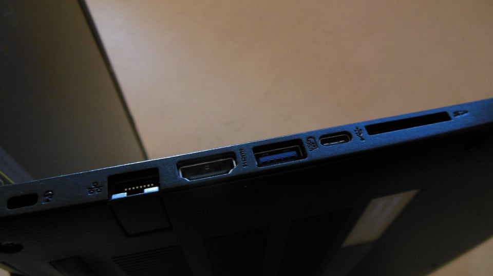 Das I/O stattet Acer reichhaltig aus. Der User hat auf der linken Seite Zugriff auf einen Kensington-Lock, einen Gigabit-Ethernet-Port, einen HDMI-Port sowie je einen USB-C- und USB-3.0-A-Anschluss. Löblich, dass der taiwanesische Hersteller einen Full-Size-SD-Kartenleser verbaut.