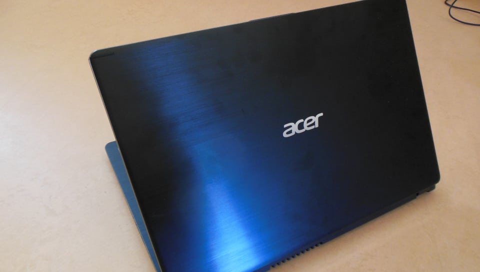 Der Deckel des Aspire besteht aus gebürsteten Aluminium. Dieses ist leider sehr anfällig für Fingerabdrücke. Öffnet man den Laptop, was sich mit einer Hand realisieren lässt, so fällt der Blick auf das IPS-Display, das mit 1.920 auf 1.080 Pixeln auflöst. Die Gelenke an dessen Unterseite lassen ein Öffnen des Deckels um bis zu 180 Grad zu. Die Blickwinkelstabilität befindet sich, IPS-typisch, auf einem sehr hohen Niveau. Der Kontrast und die Farben sind gut. In direkten Sonnenlicht fällt das Arbeiten aber schwer, da das entspiegelte Display dafür eine zu geringe Maximalhelligkeit besitzt. Deshalb sollte man besser den Schatten aufsuchen.