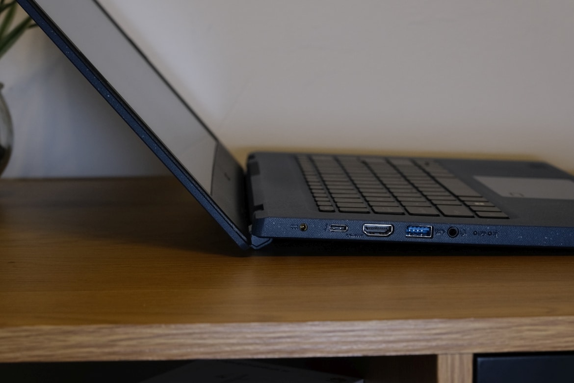 Etwas schade, dass Acer hier nur einen der modernen USB-Type-C-Anschlüsse verbaut. Zudem dieser mit verbundenem Netzteil bereits belegt ist. Ein SD-Kartenleser oder ähnliches wäre darüber hinaus noch schön gewesen, glänzt aber leider durch Abwesenheit.