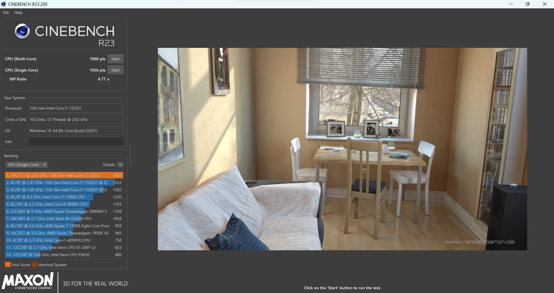 | Cinebench R23 Single Core | 1.656 Punkte |