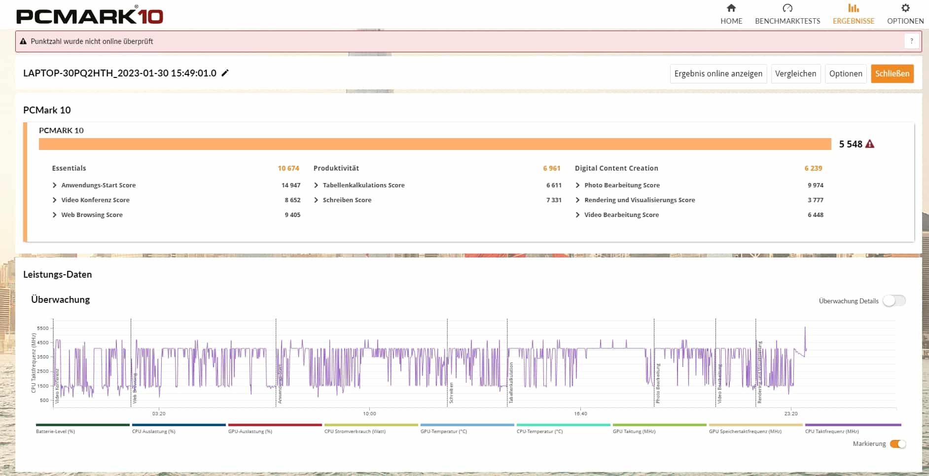 | PCMark 10 Gesamtwert | 5.548 Punkte |